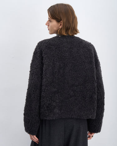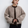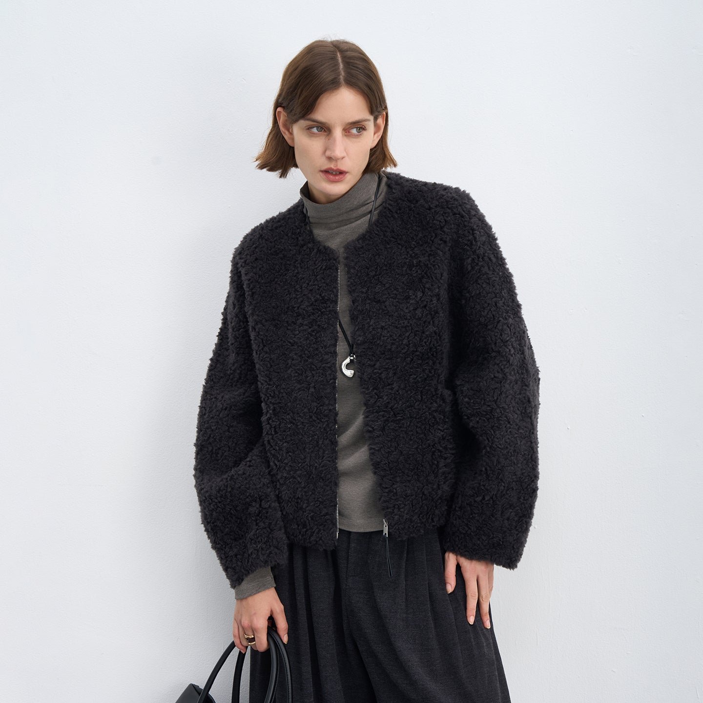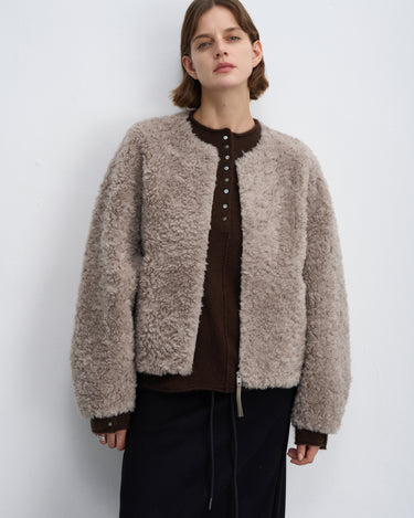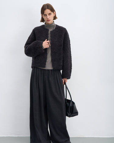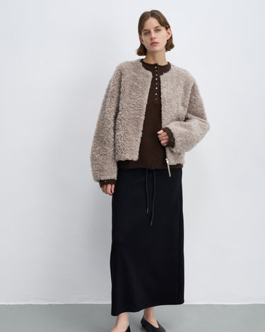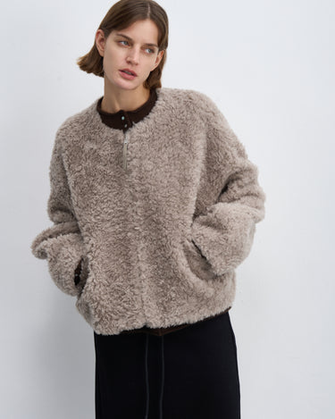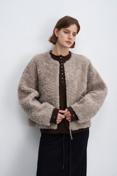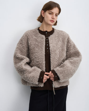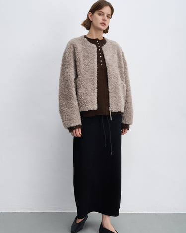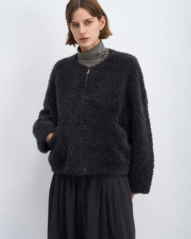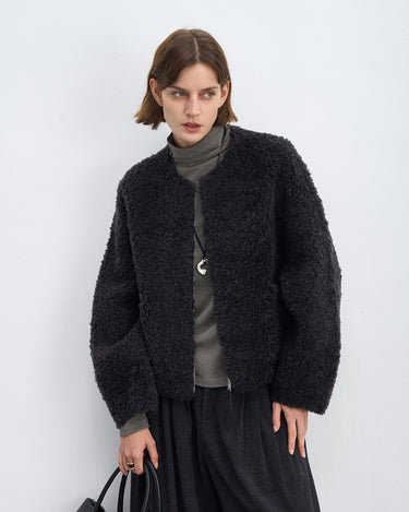 Fluffy Wool Zip-Up Crew Neck Coat