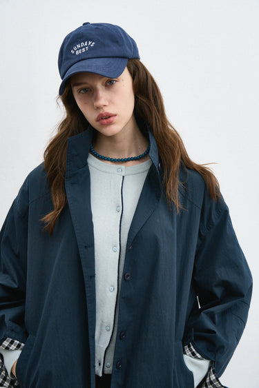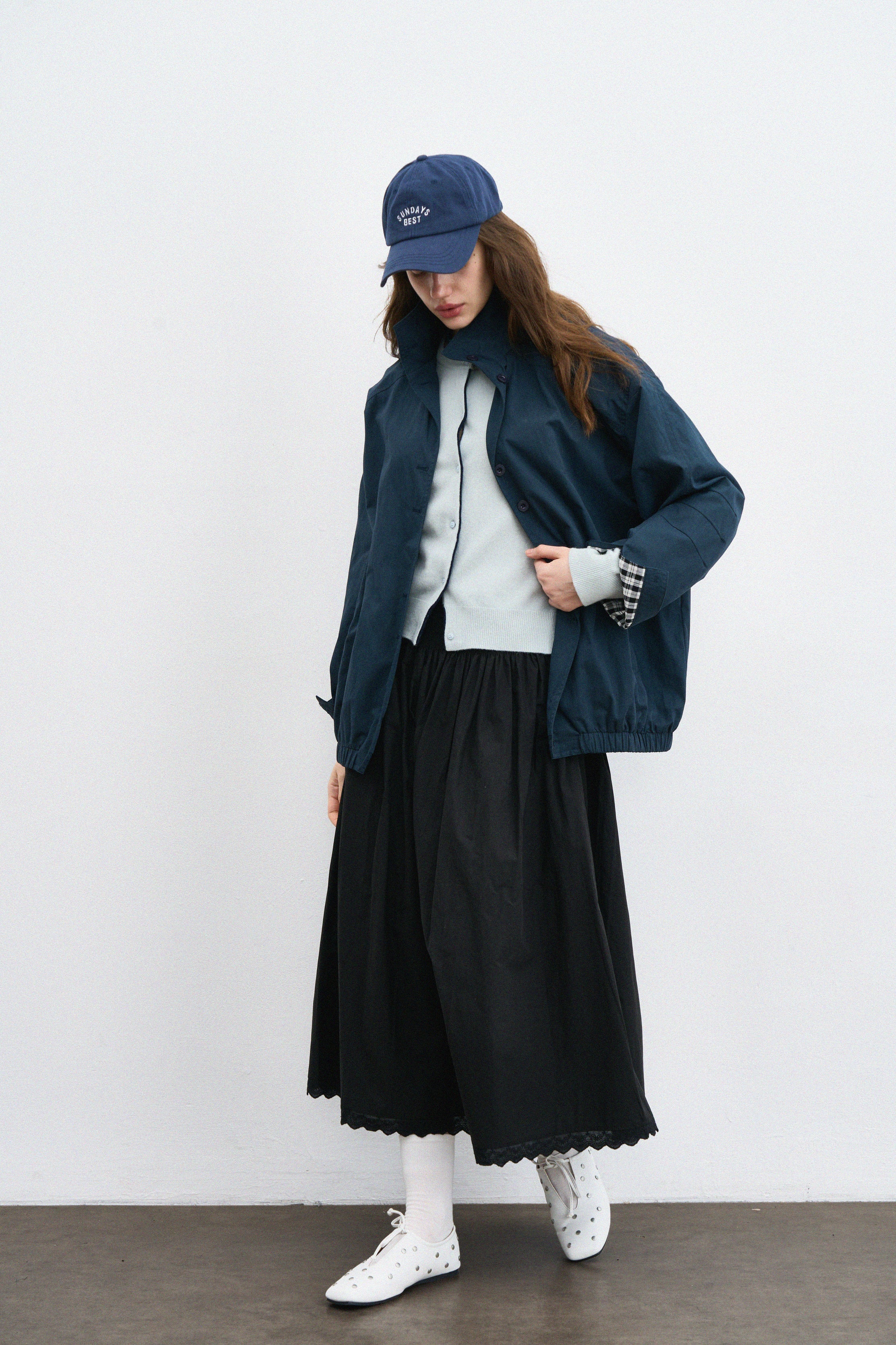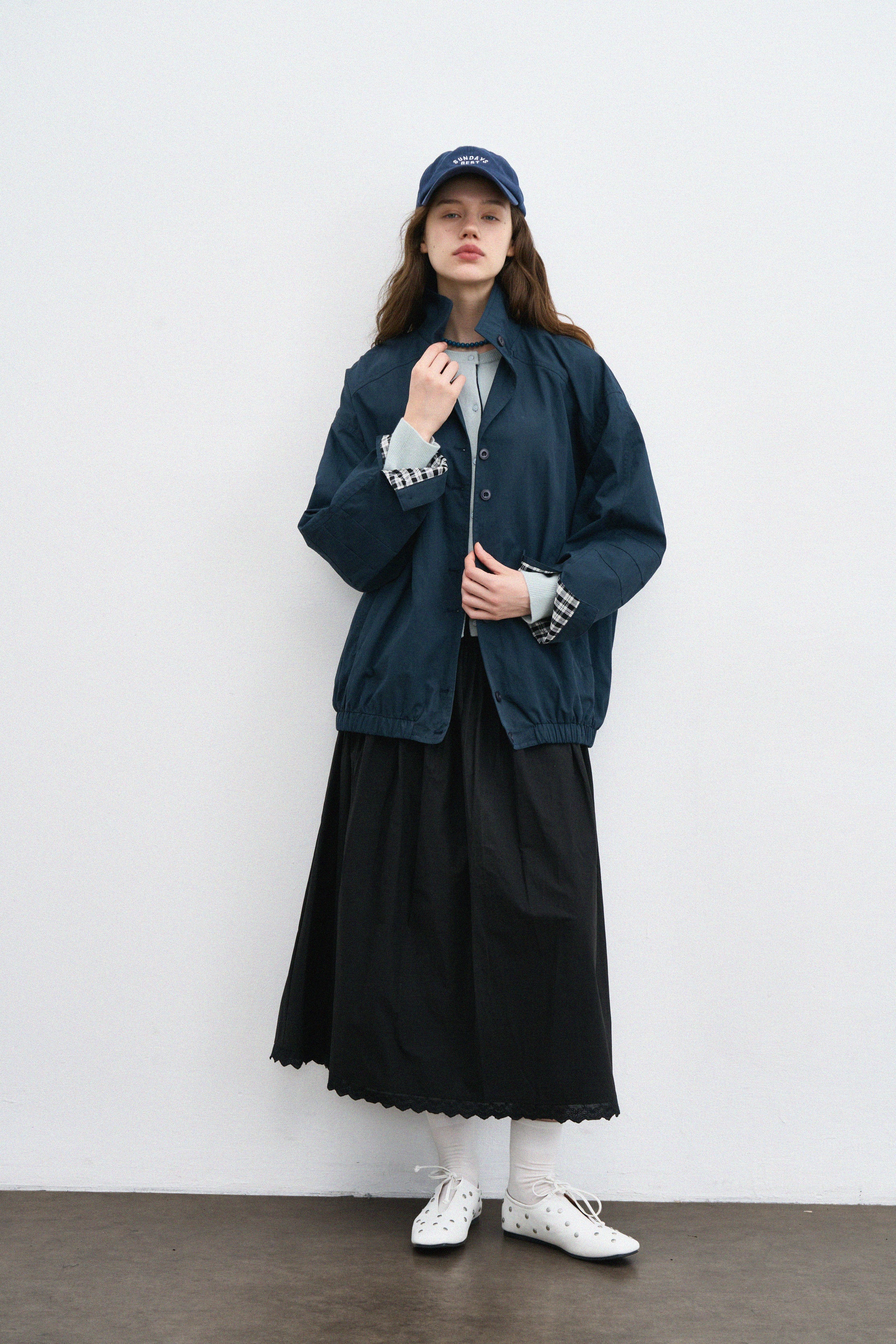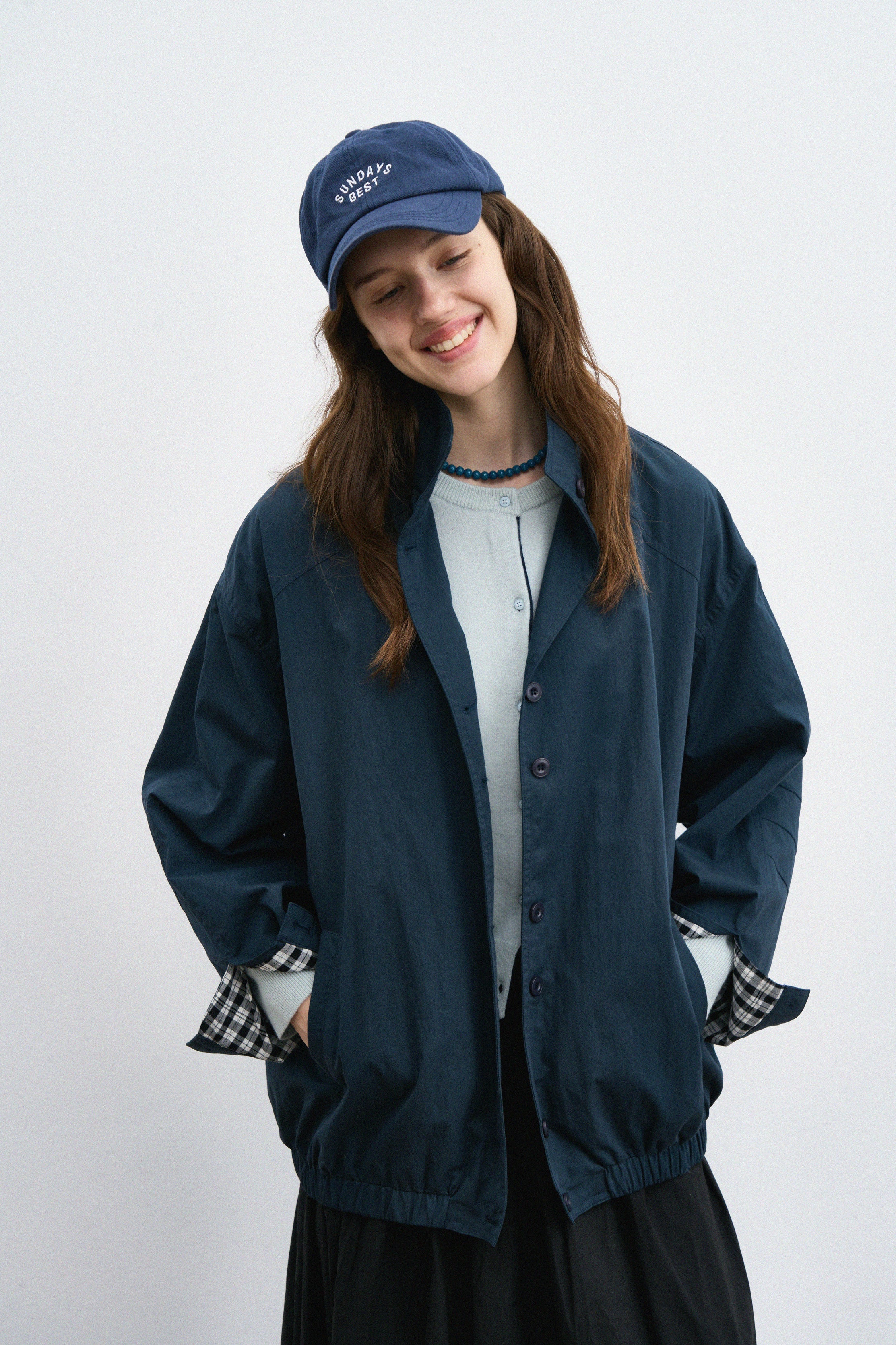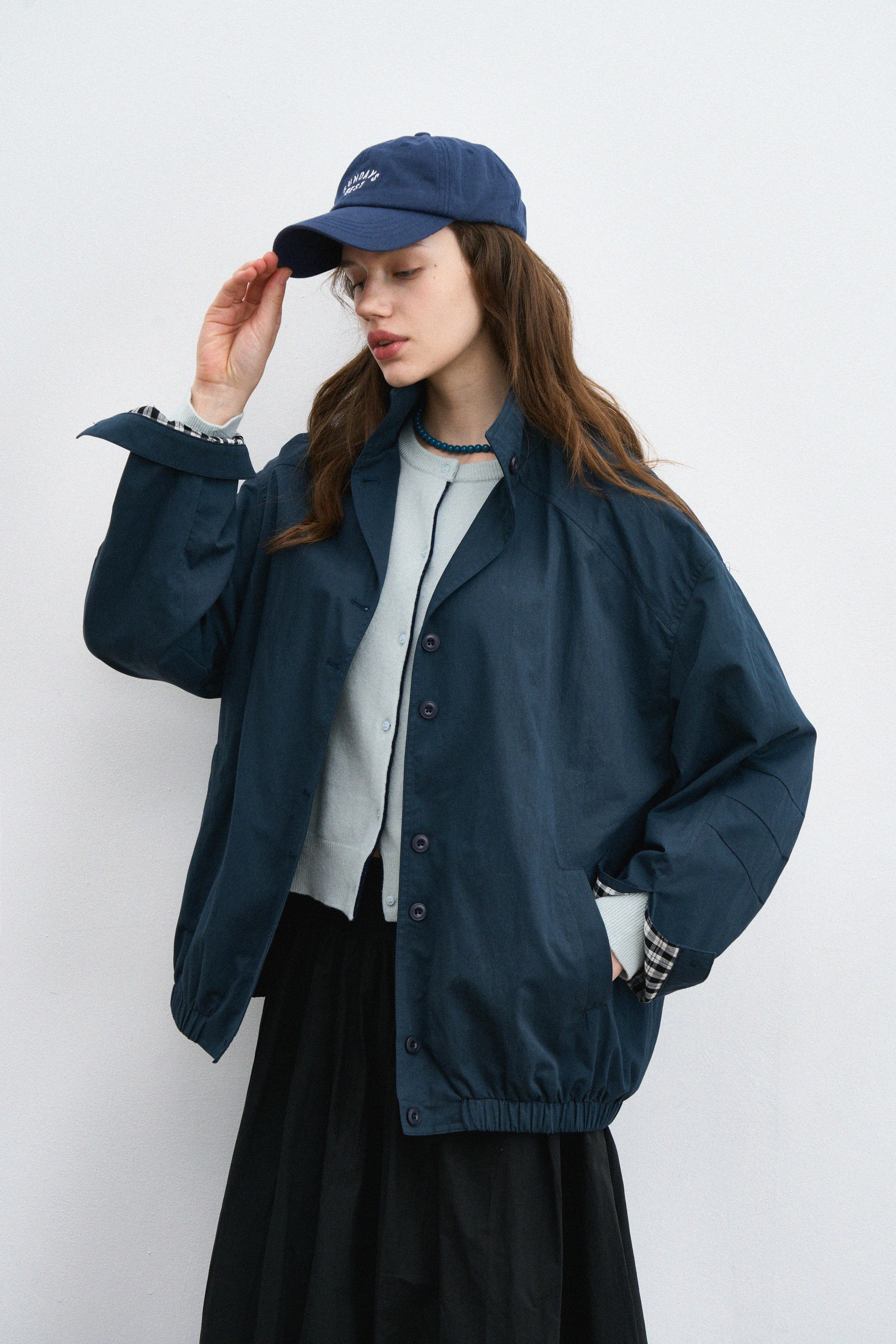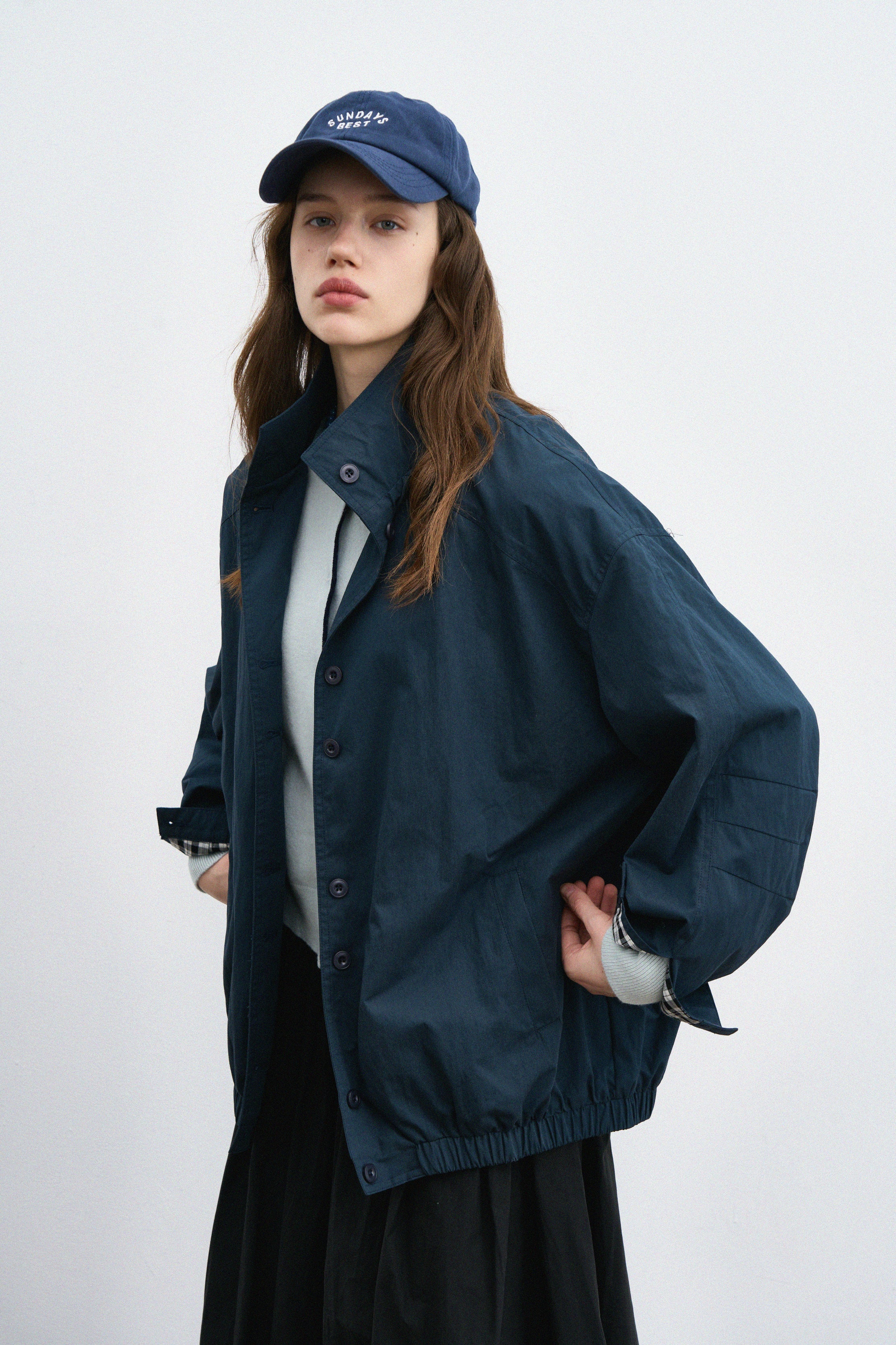 Trendy Stand-Up Collar Oversized Jacket with Checkered Panels