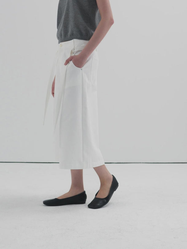 Designed with a loose wide-leg cut, these cropped trousers enhance the waistline, slim the hips, and visually elongate the legs. The detachable sash belt adds shape and styling versatility.