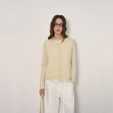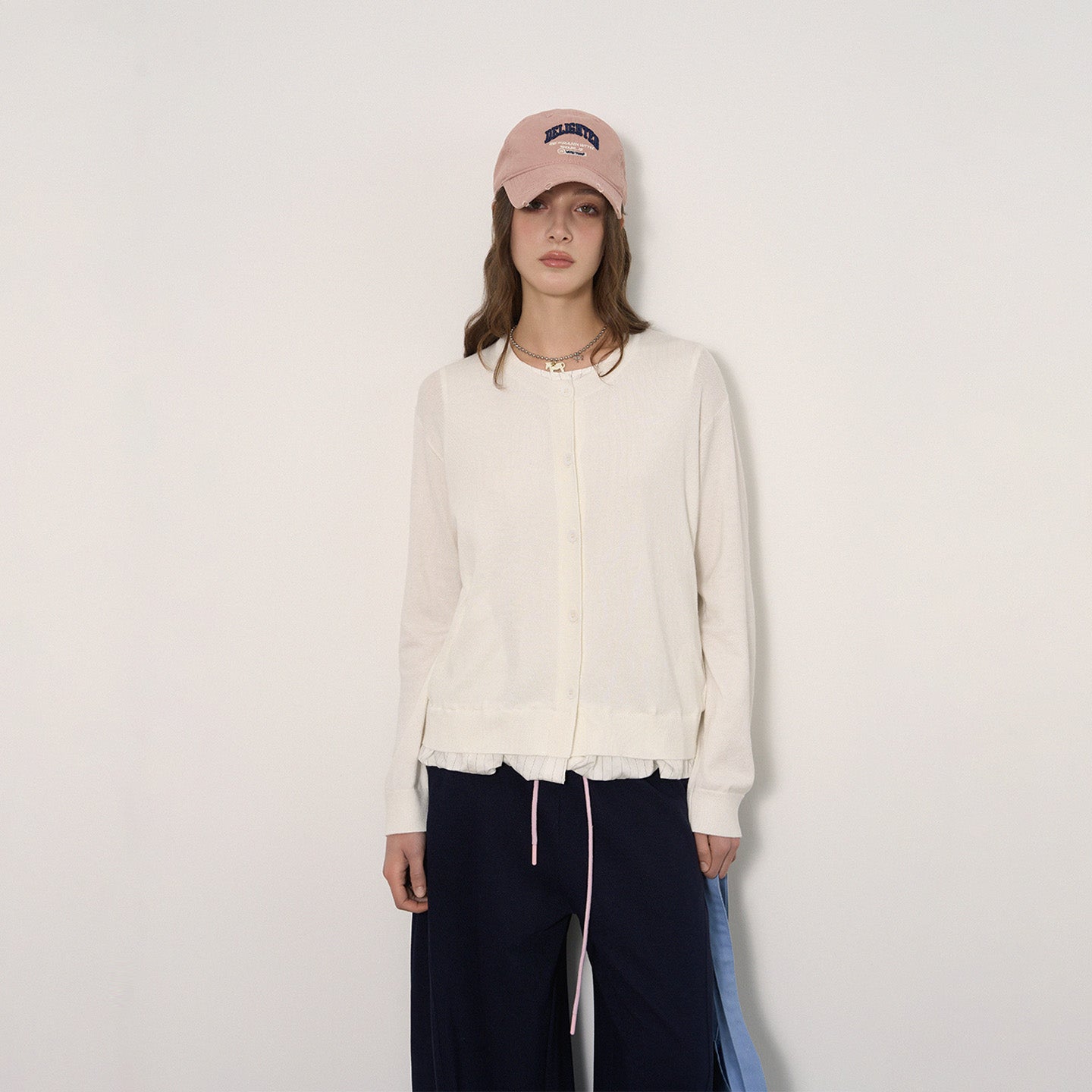Sophisticated Striped Patchwork Cardigan with Ruffled Hem