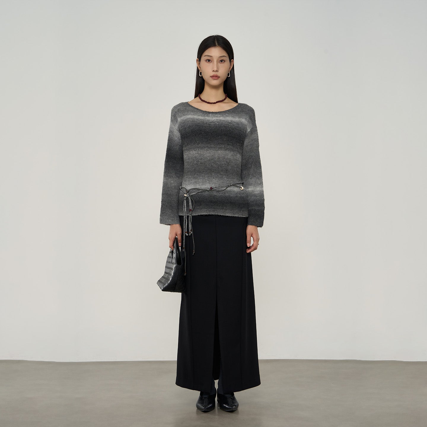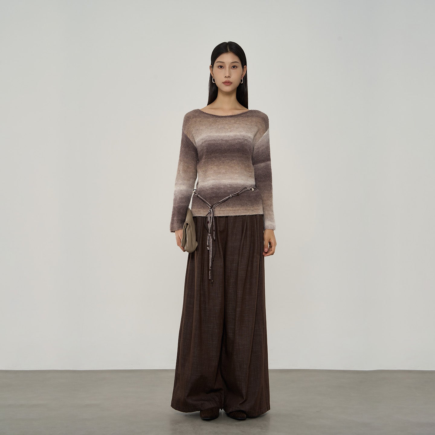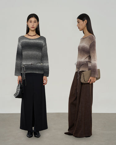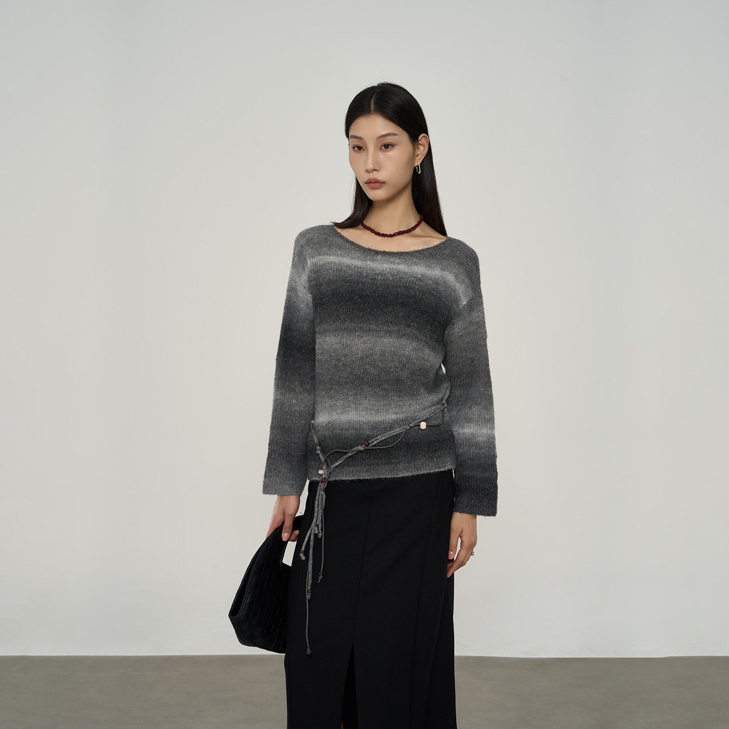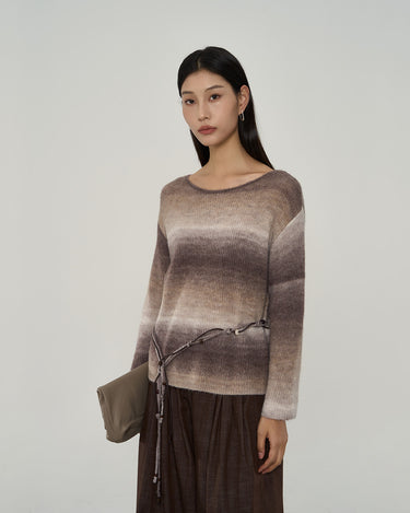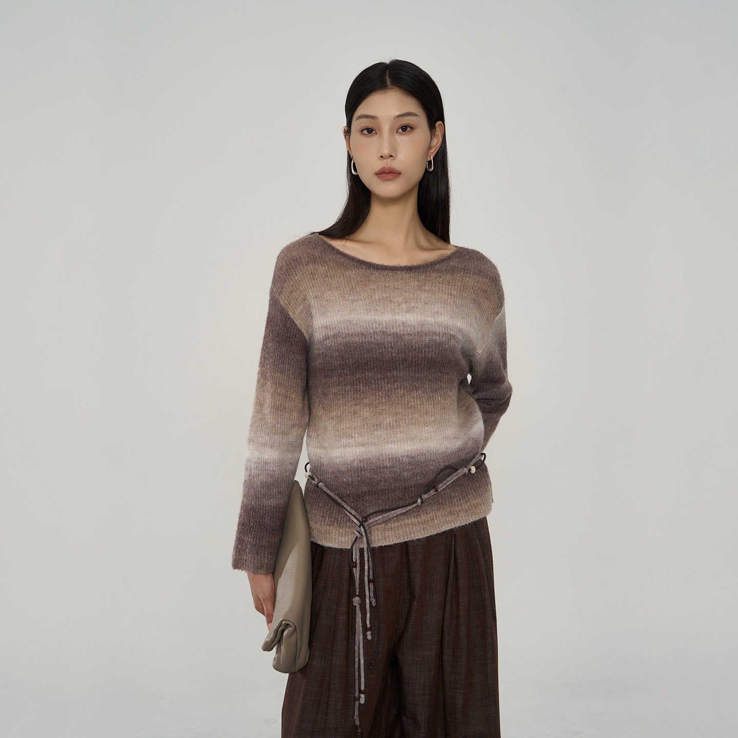 This premium alpaca wool sweater features an iridescent gradient knit that creates a cool, refined glow, elevating everyday looks with artistic depth and modern elegance.
