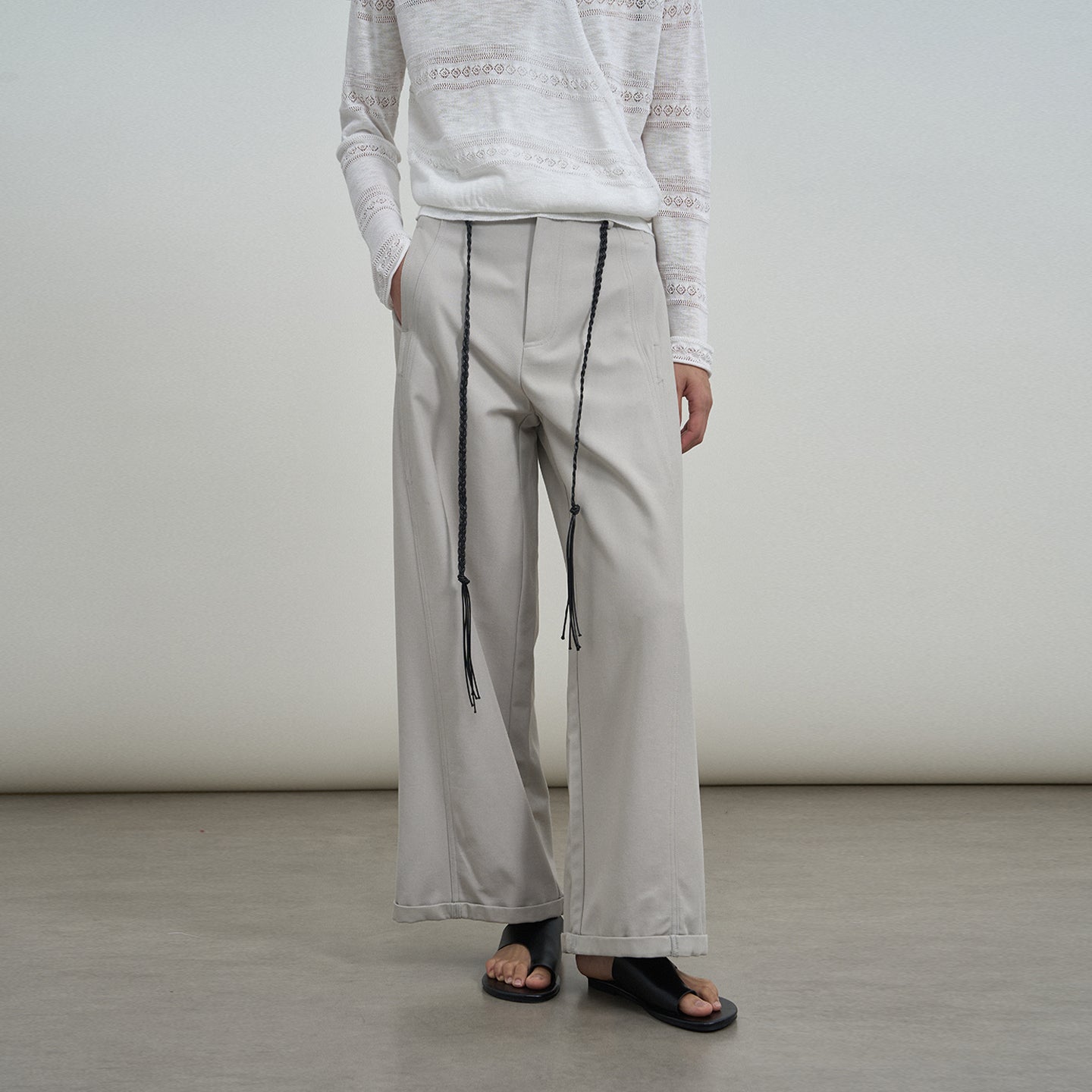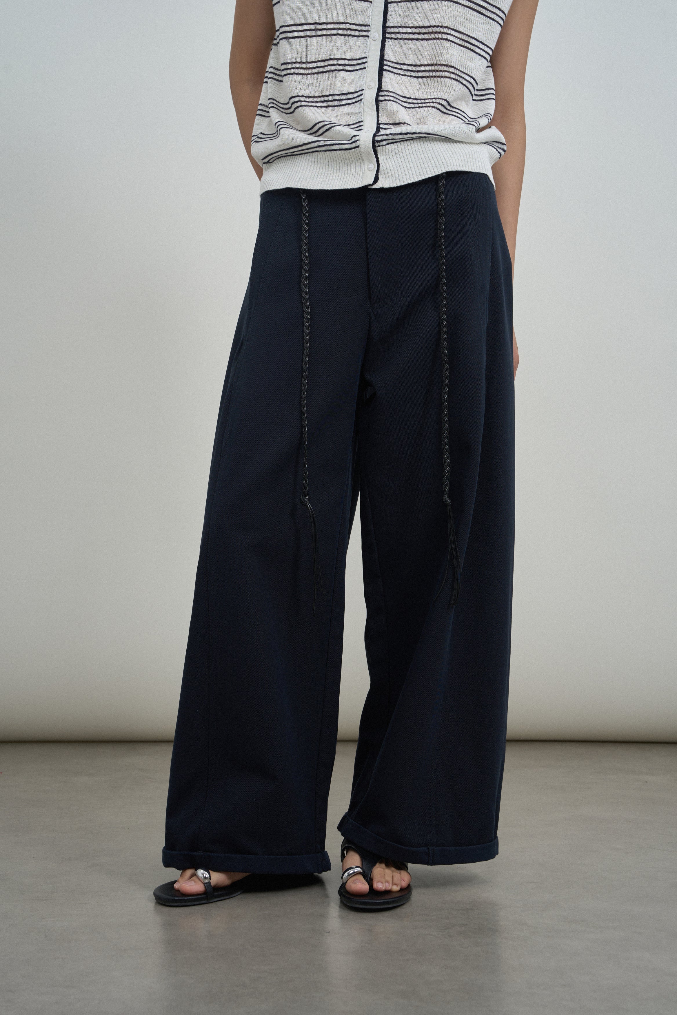 Chic Braided Belt Wide Trousers