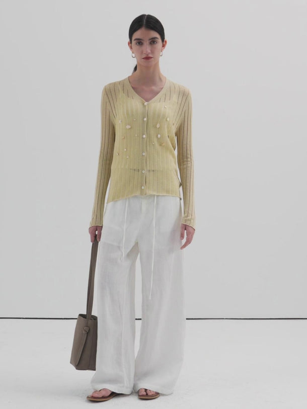 Crafted from a premium linen-blend fabric, these lightweight pants deliver cool breathability and a soft, airy feel. The semi-sheer texture adds a relaxed summer touch while keeping every step comfortable and fresh.