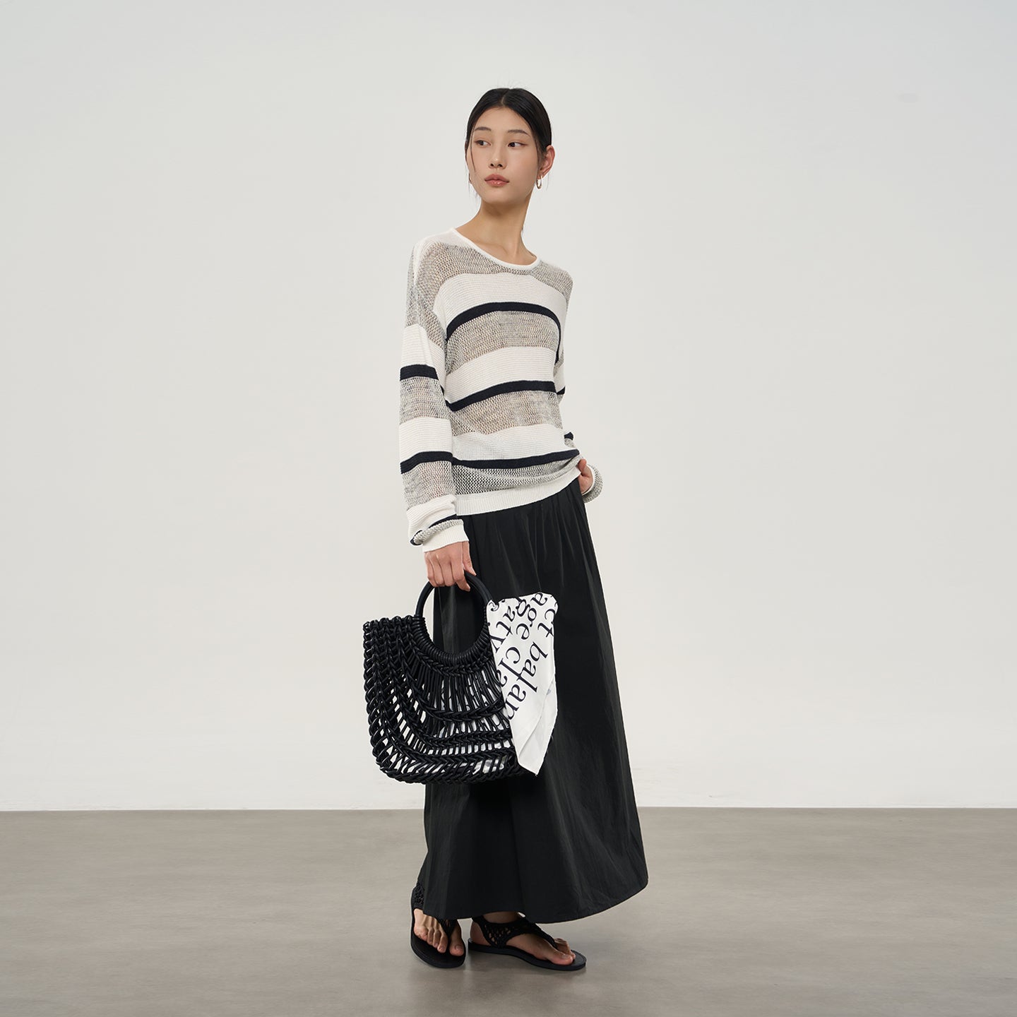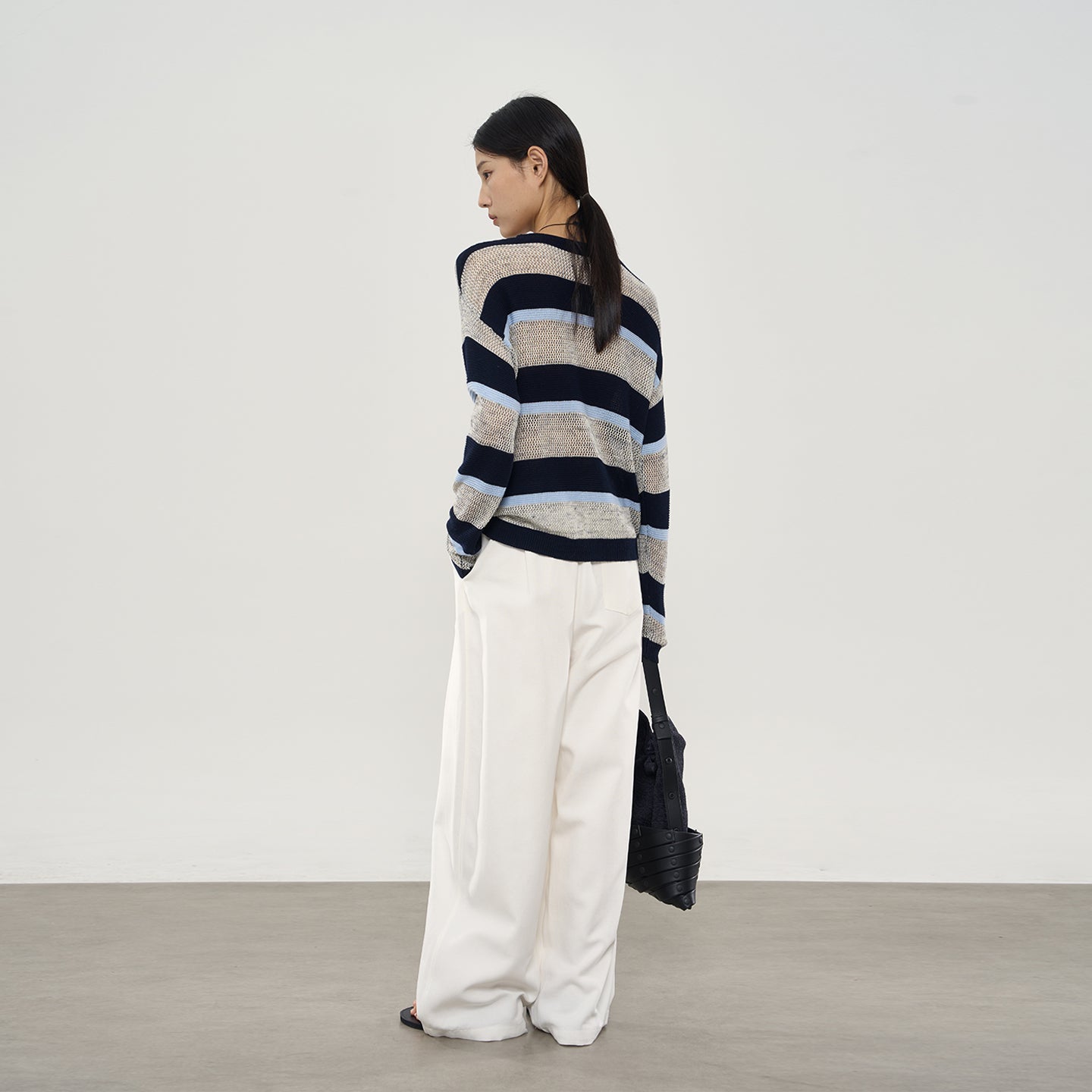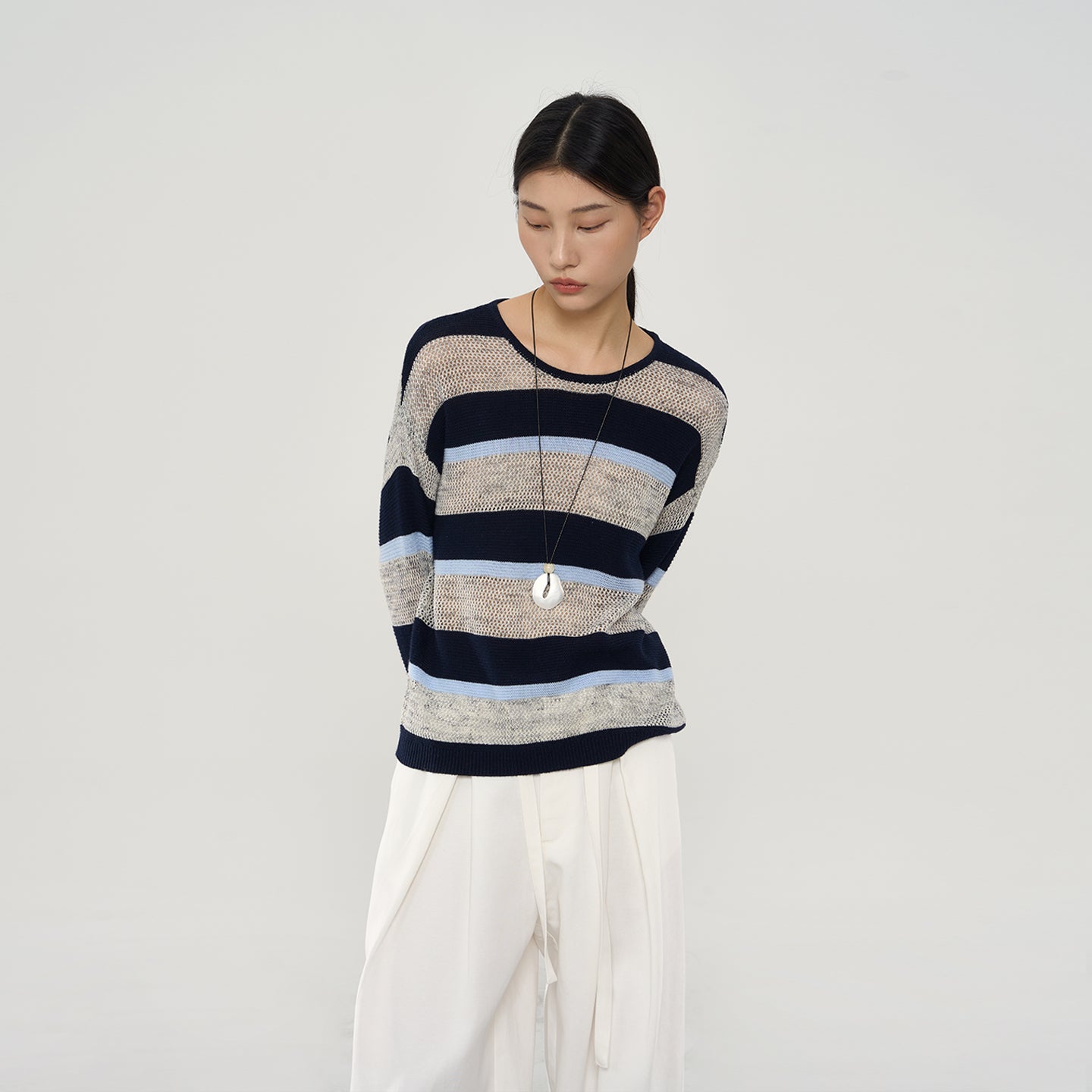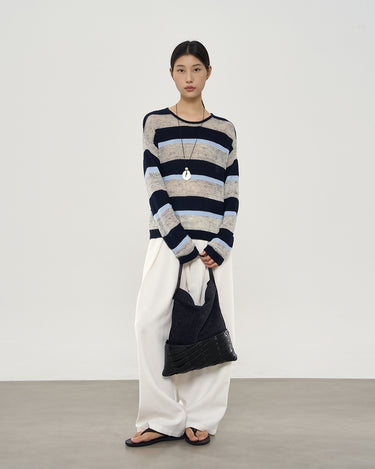 Perfect for early autumn, the relaxed drop-shoulder silhouette offers casual ease, while classic stripes add subtle sophistication and visual interest.