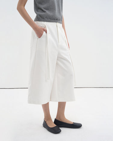 Designed with a loose wide-leg cut, these cropped trousers enhance the waistline, slim the hips, and visually elongate the legs. The detachable sash belt adds shape and styling versatility.