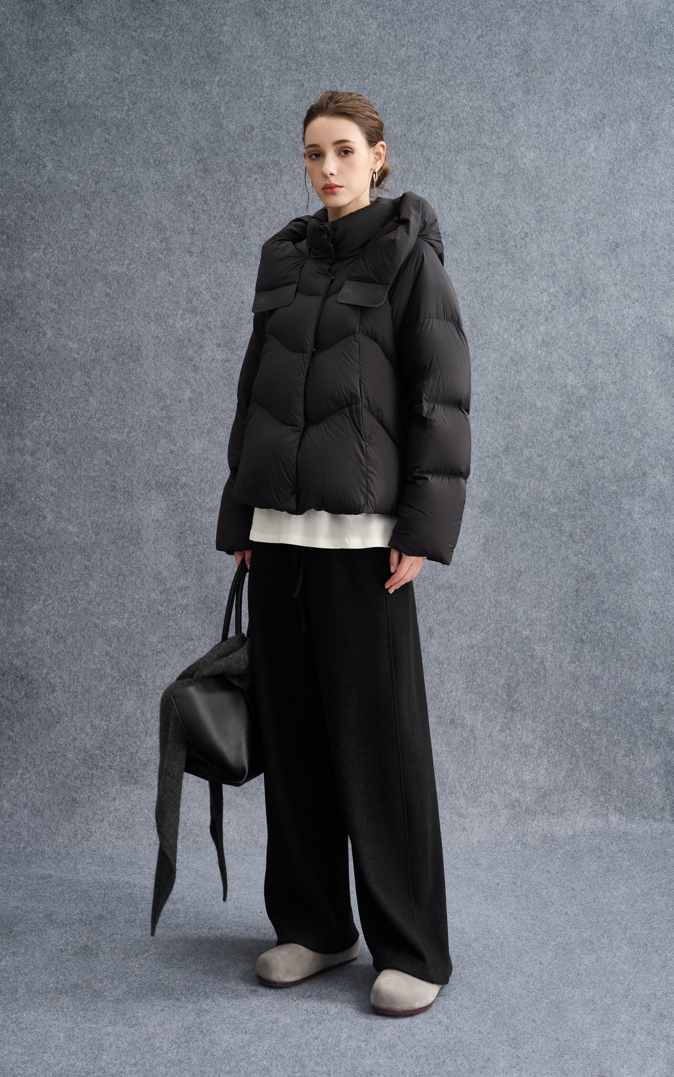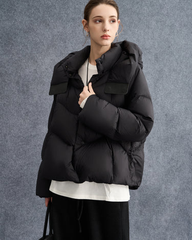 Leather-Buckle Hooded Down Coat for Women