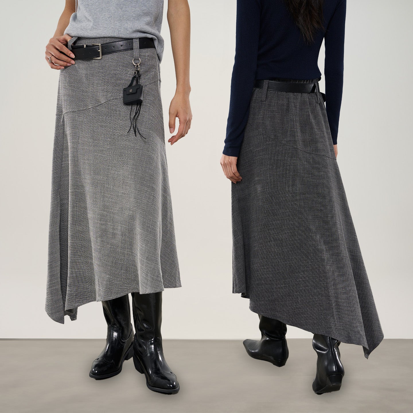 Crafted from fine, drapey fabric, this asymmetric mini skirt moves with effortless ease. The bias-cut hem creates a modern A-line flow that feels light, refined, and fashion-forward.