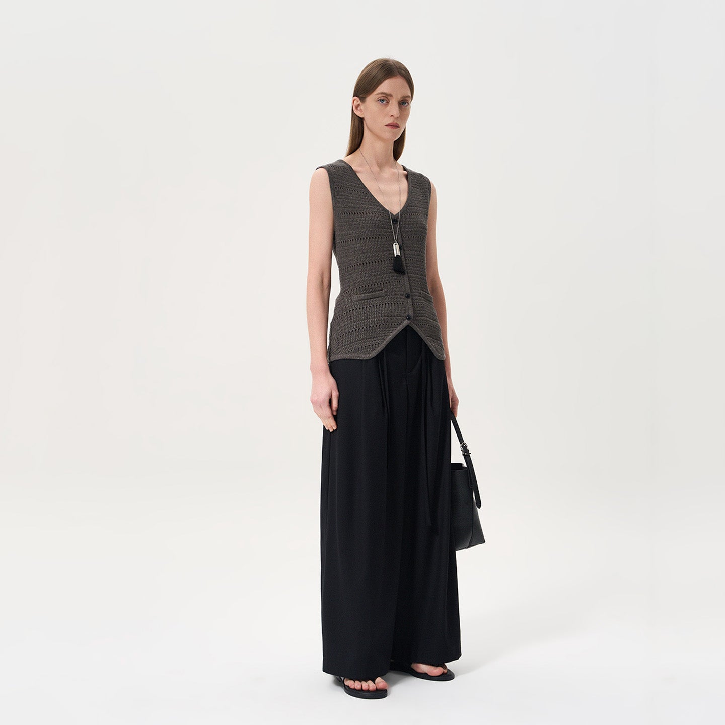 Relaxed Fit Lace-Up Knit Top with Cinched Waist