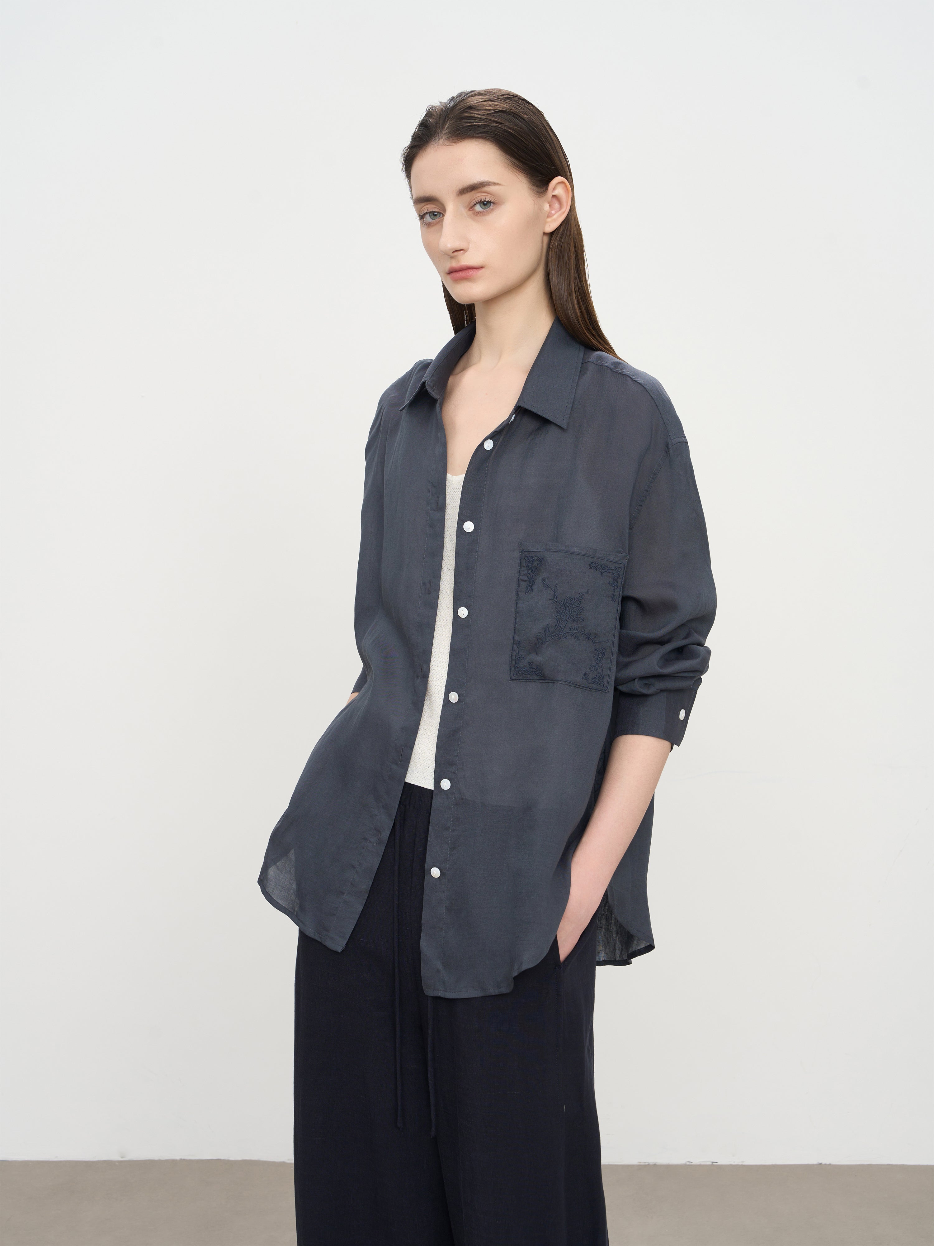 Refresh your wardrobe with this linen embroidered long-sleeve shirt, crafted from a breathable linen-Tencel blend. Lightweight and airy, it delivers all-day comfort with a clean, minimalist aesthetic.