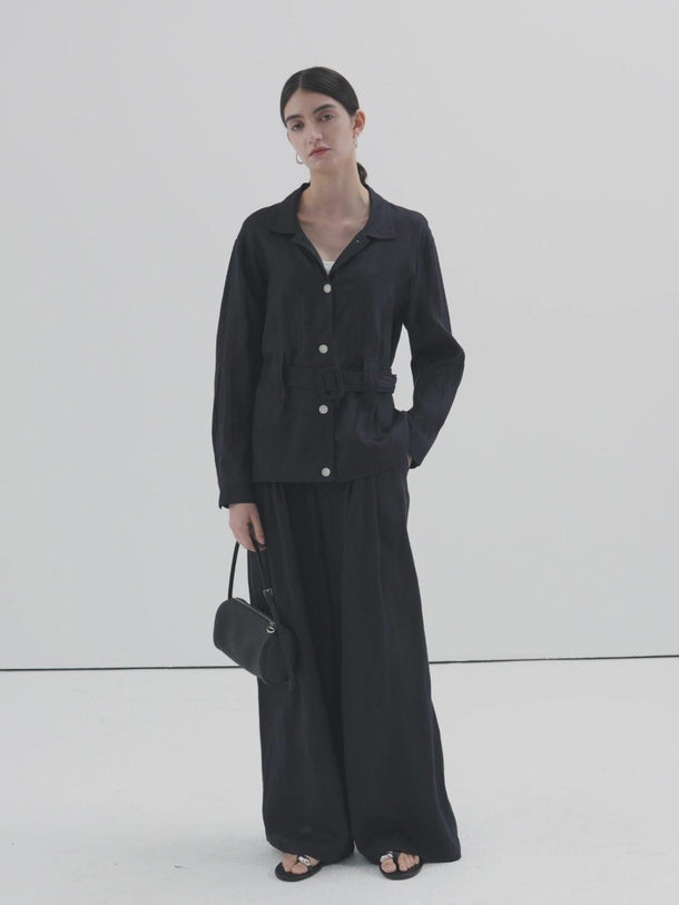 A classic lapel, single-breasted button front, and symmetrical chest pockets create a modern workwear-inspired look. The clean structure delivers professional sophistication while maintaining a relaxed, easy silhouette.