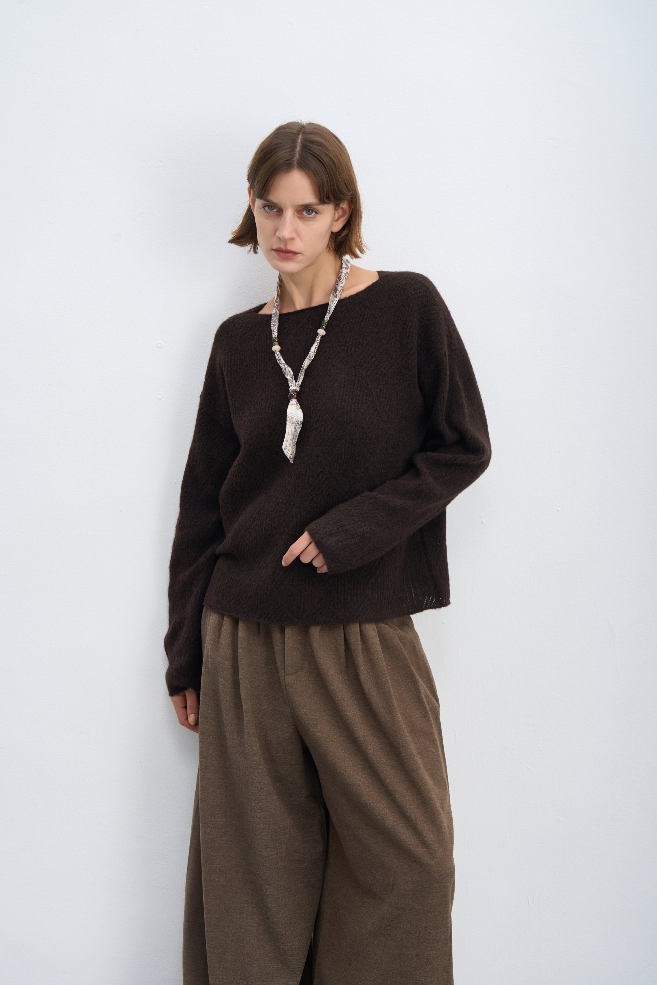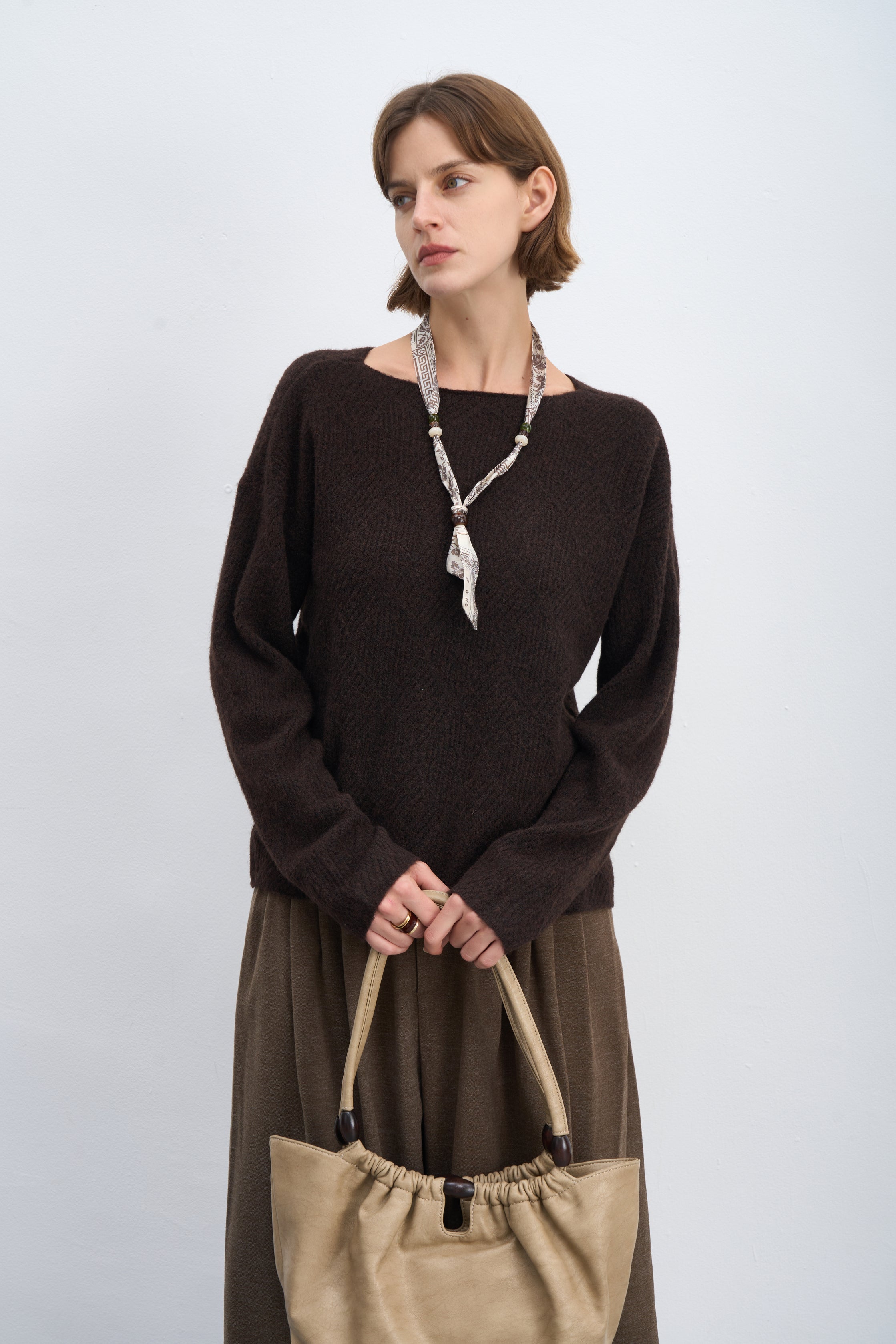 Wool-Alpaca Blend Diamond Openwork Sweater