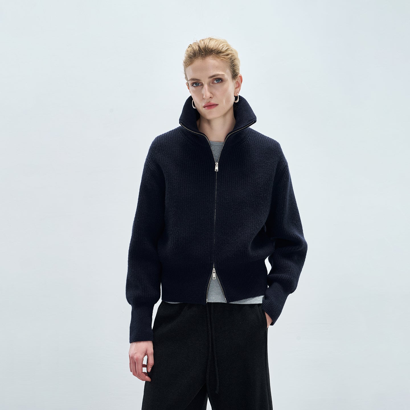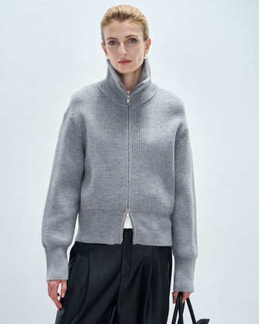 Minimalist Double-Zip High-Neck Sweater