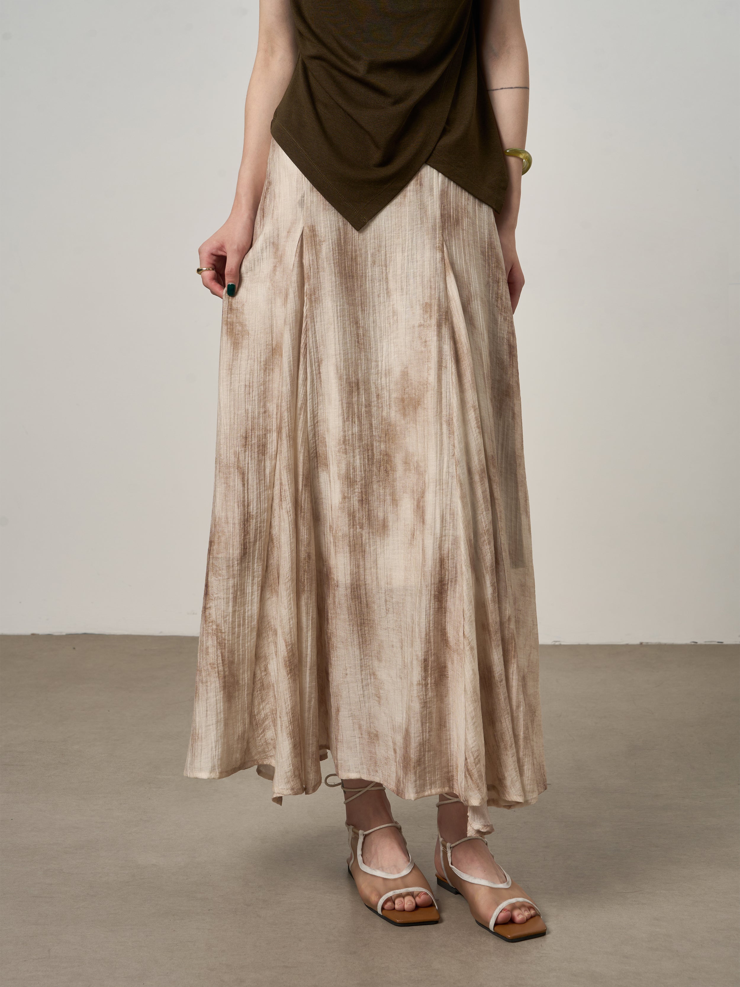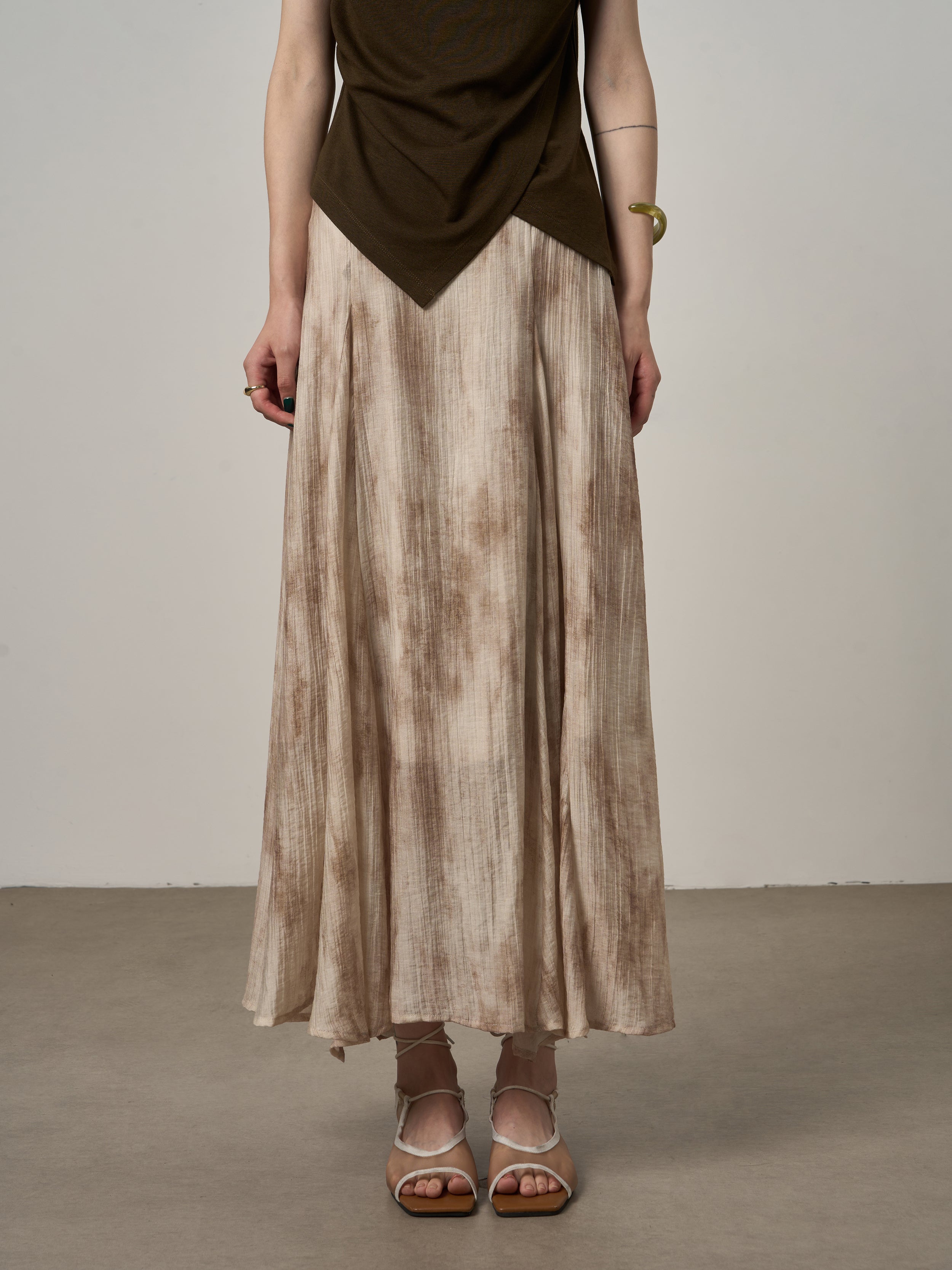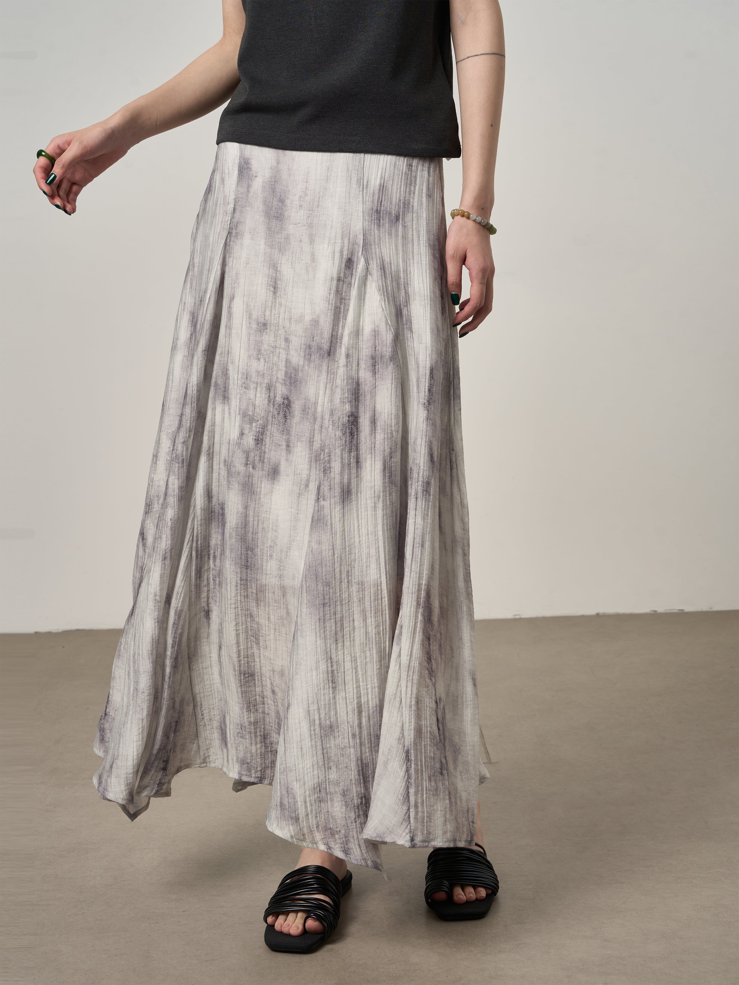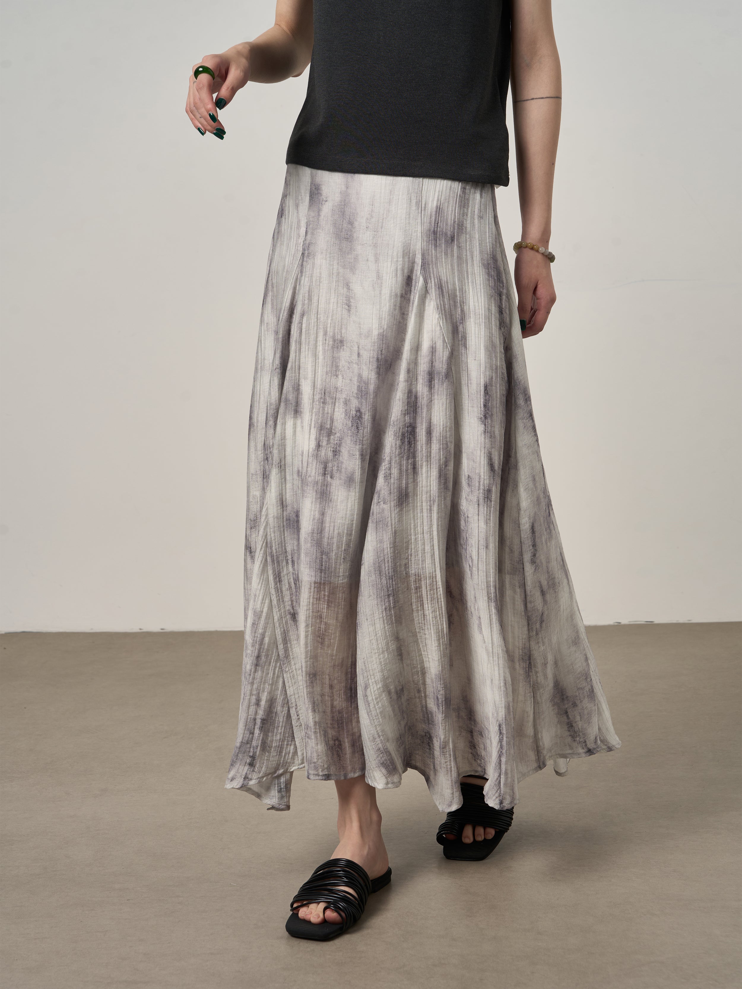 Inspired by timeless ink-wash aesthetics, this skirt blends artistic expression with modern minimalism. The subtle print adds refined character while maintaining effortless sophistication.