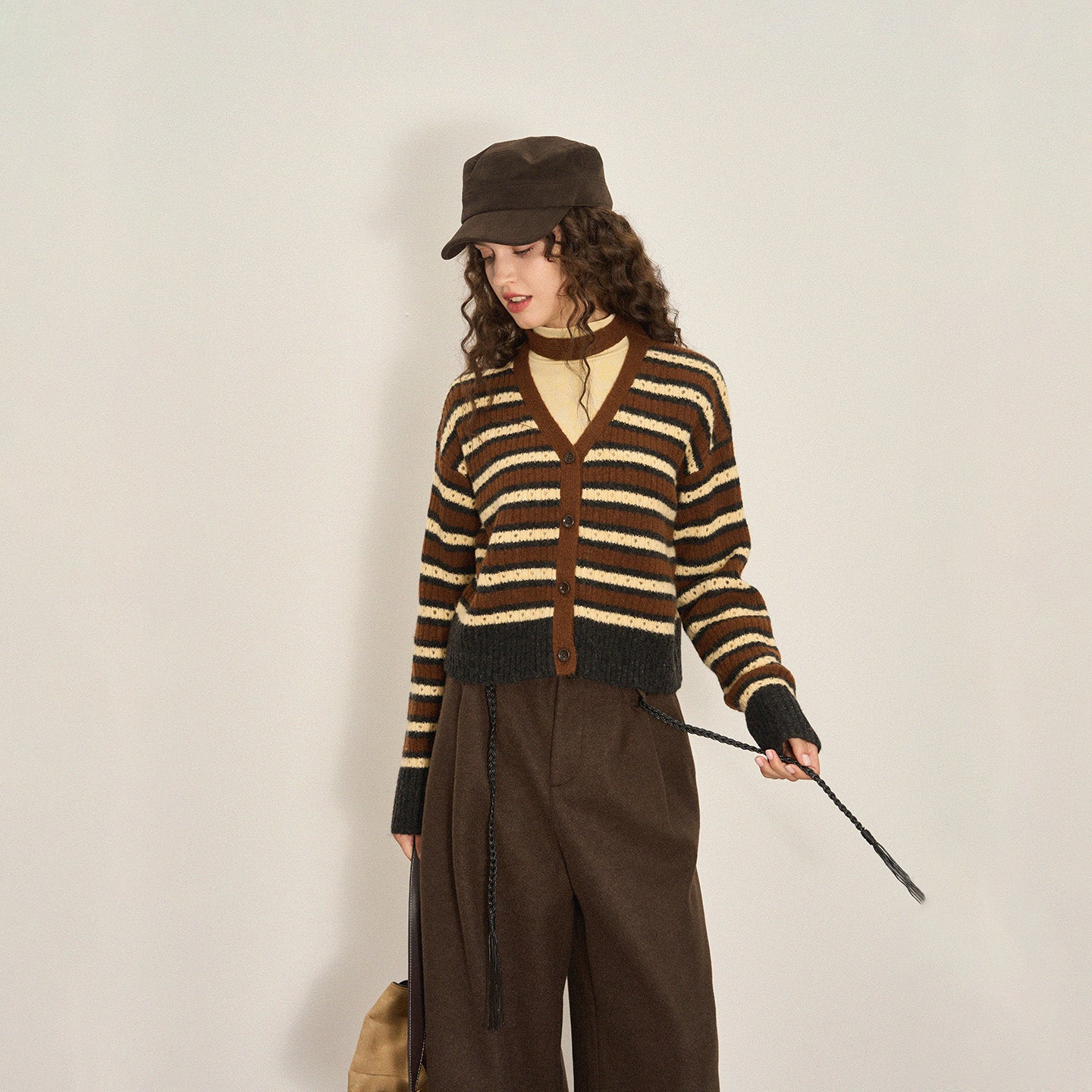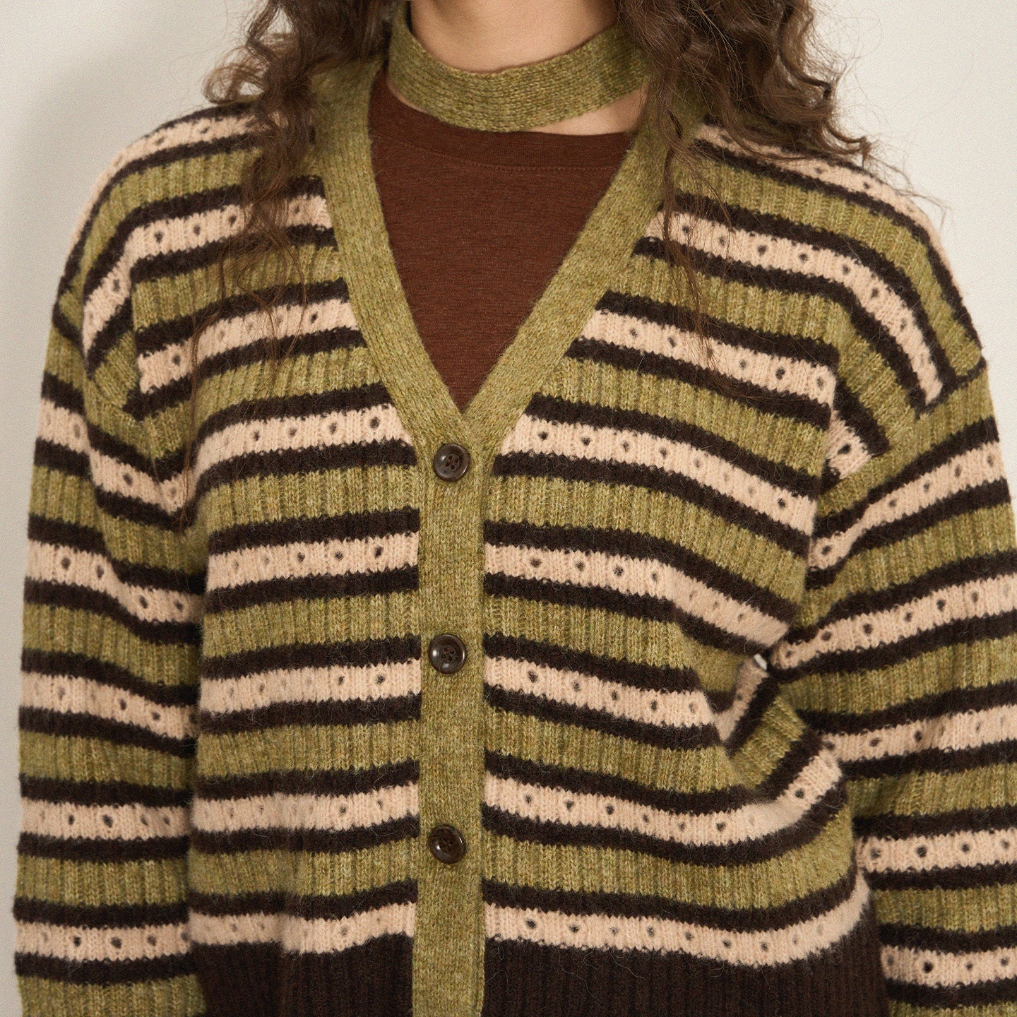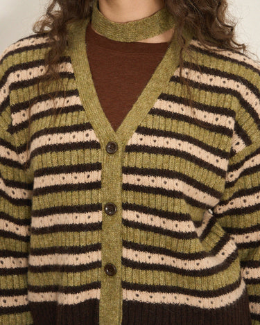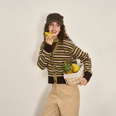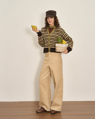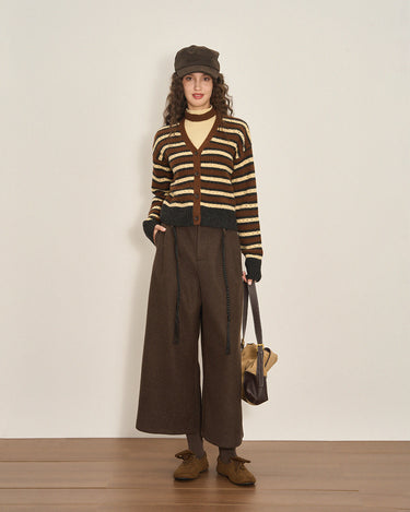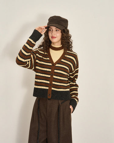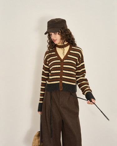 Cropped Color-Block Wool Blend Cardigan