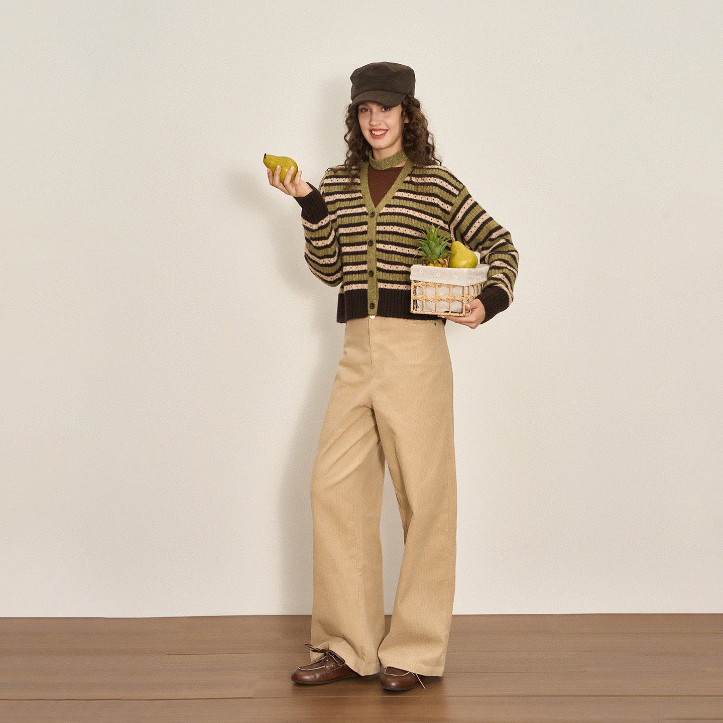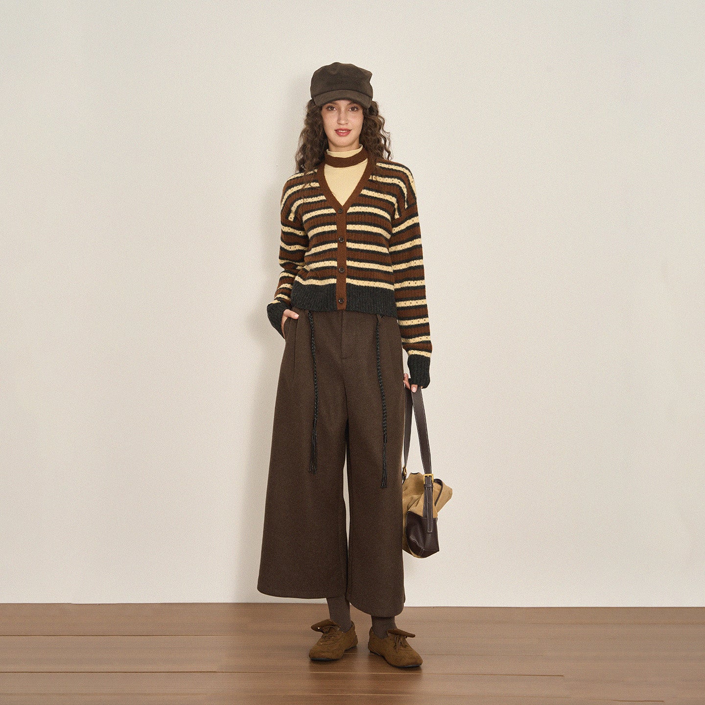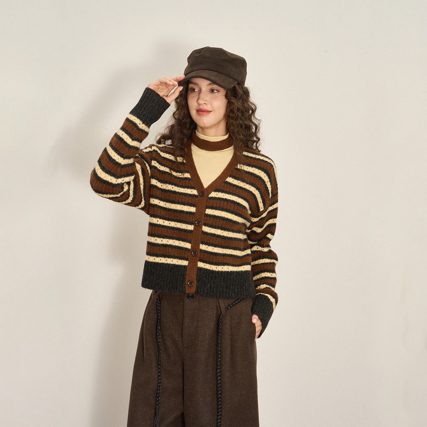 Cropped Color-Block Wool Blend Cardigan