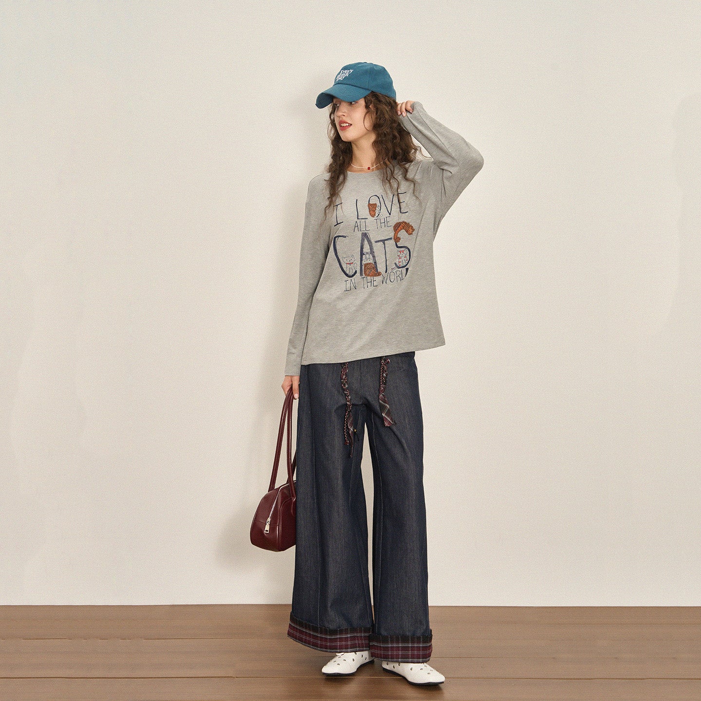 Perfect as a base layer or standalone piece, this long-sleeve top pairs seamlessly with jeans, skirts, or loungewear for a laid-back, cute-yet-cool aesthetic.