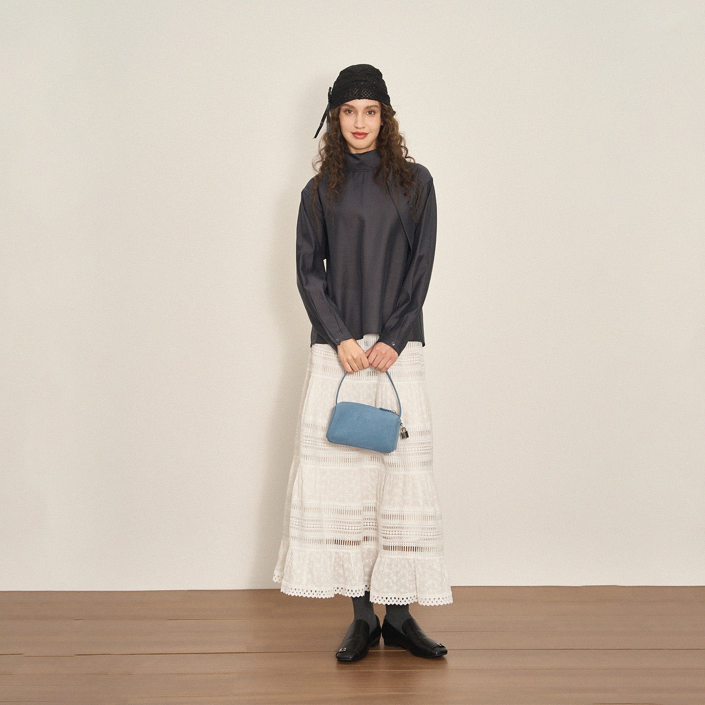 Long sleeves offer gentle sun protection, and the minimalist white tone pairs effortlessly with skirts or trousers—perfect for commuting, casual outings, or polished daily wear.