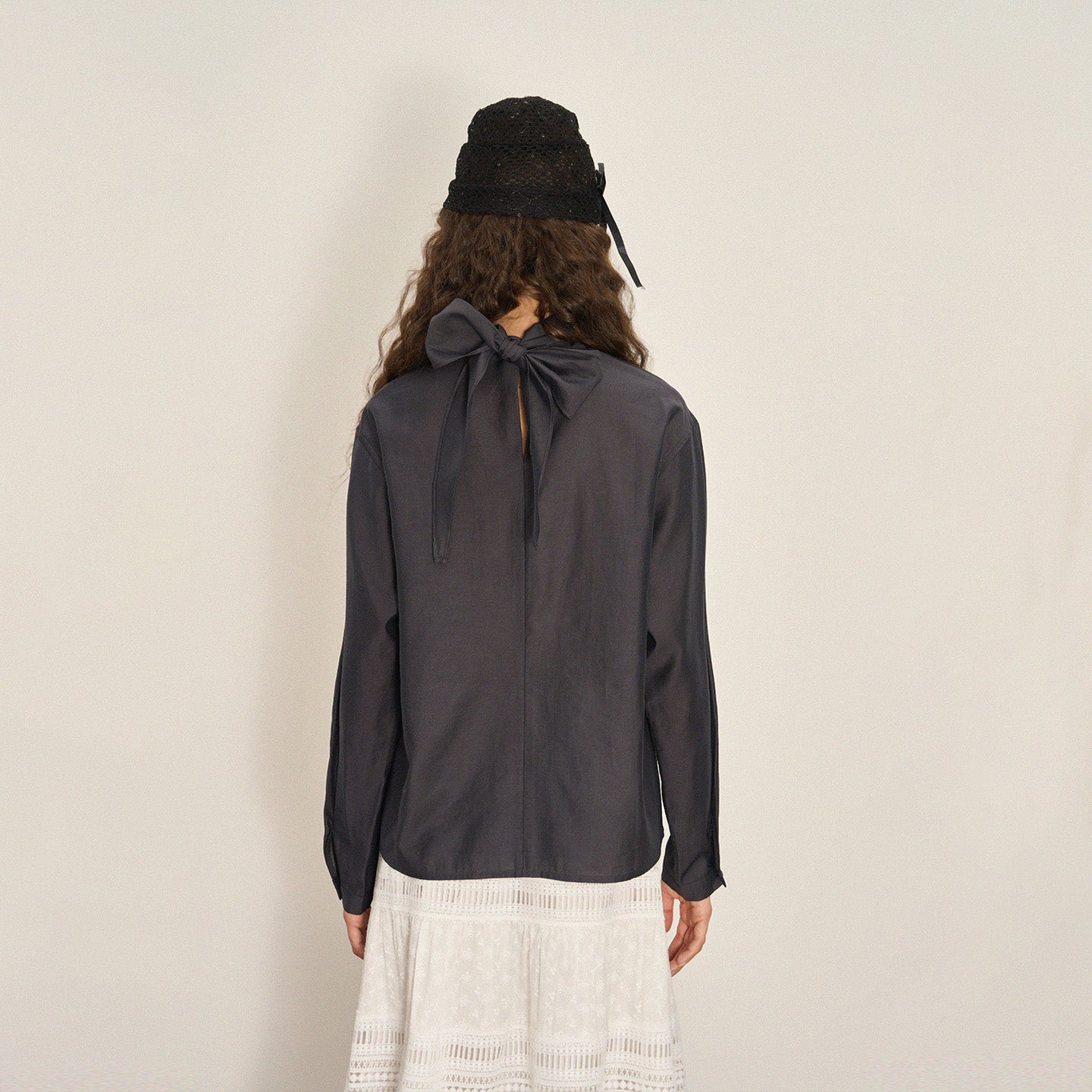 This sheer white blouse captures French-inspired charm with a pointed collar and delicate tie-front detail, creating an airy, refined silhouette that feels light, feminine, and endlessly chic.