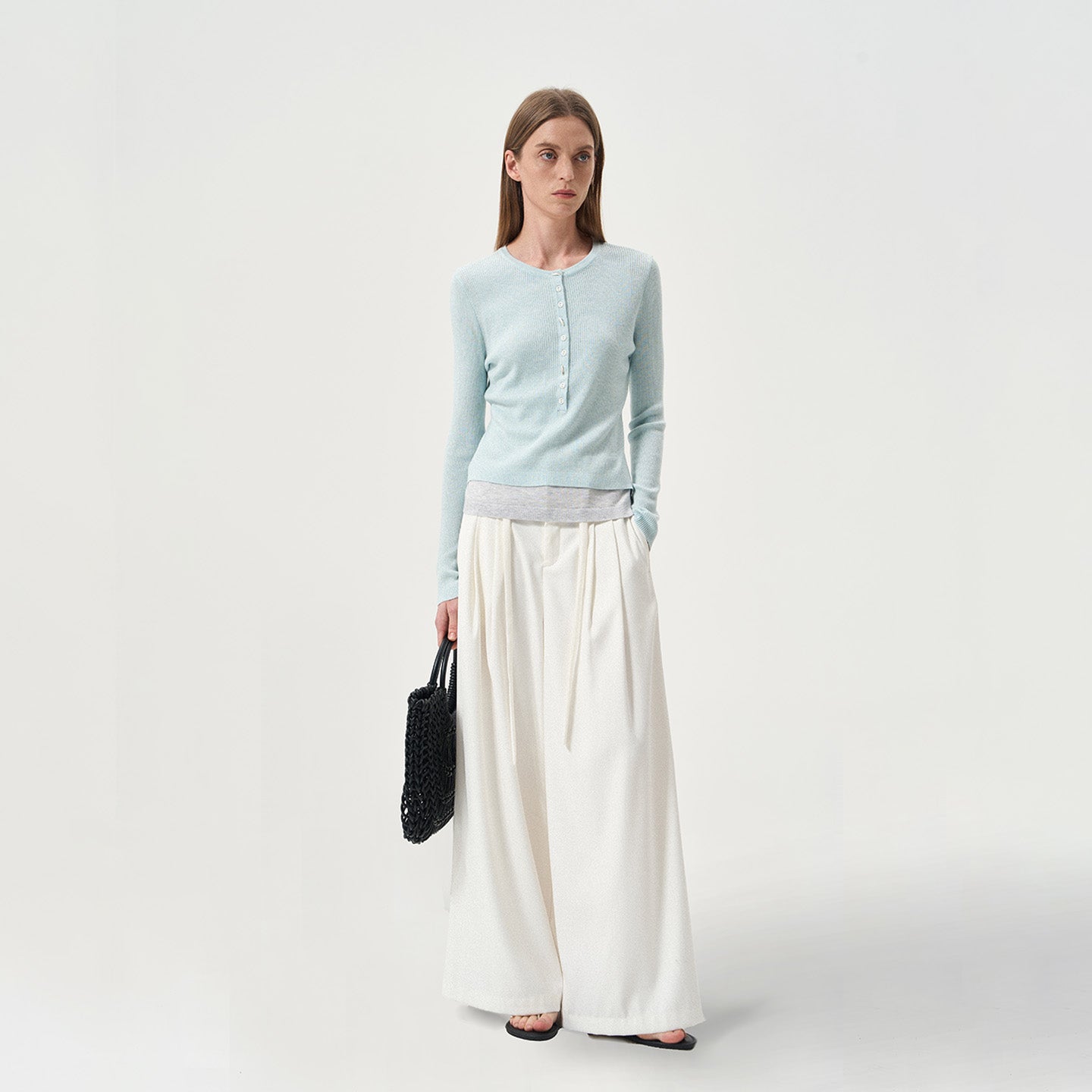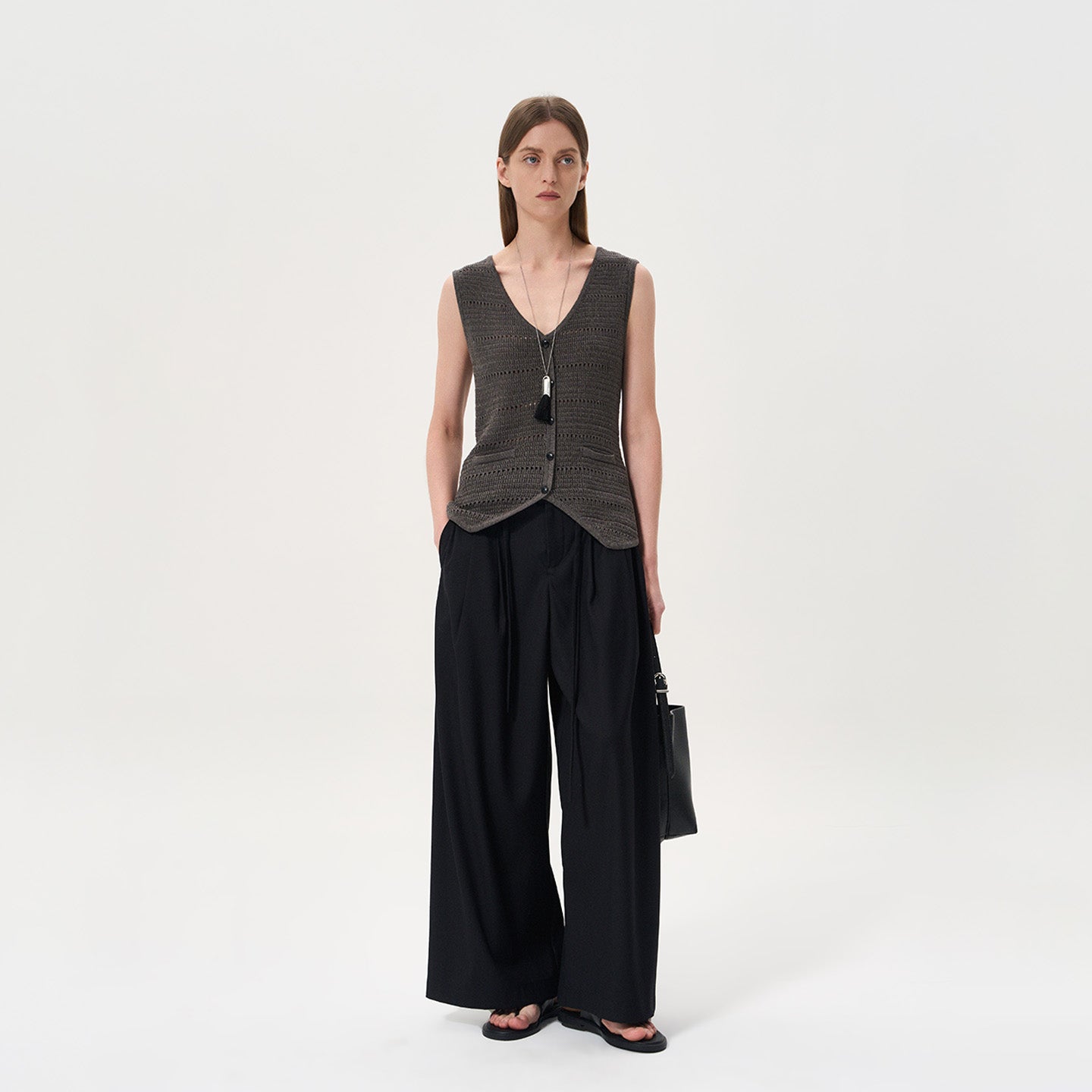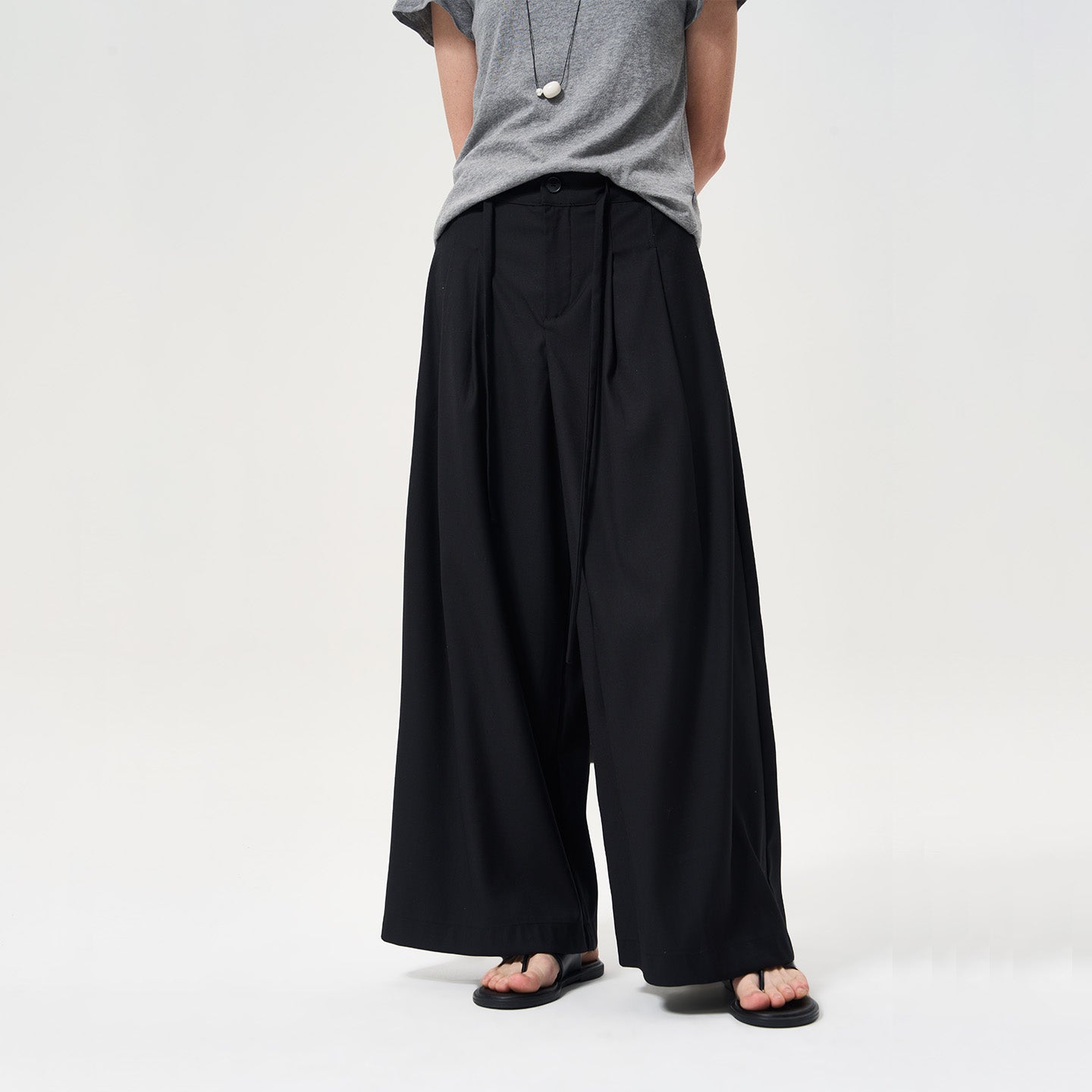 High-Waisted Wide-Leg Drapey Drawstring Pants
