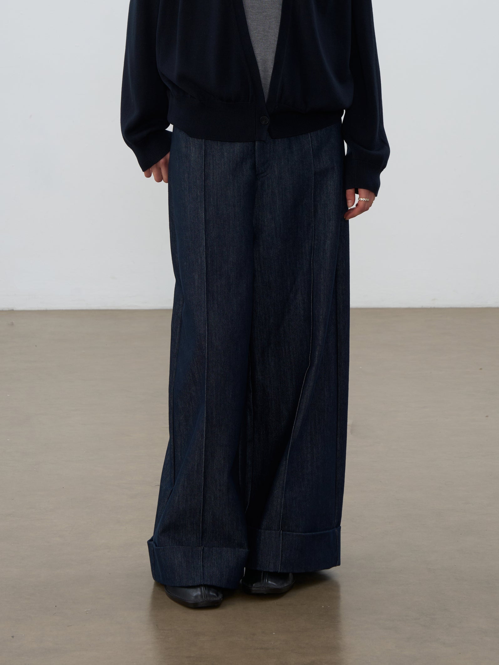 Vintage High-Waisted Wide-Leg Pants with Rolled Hems