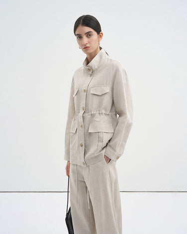 Linen Blend Drawstring Utility Pocket Shirt