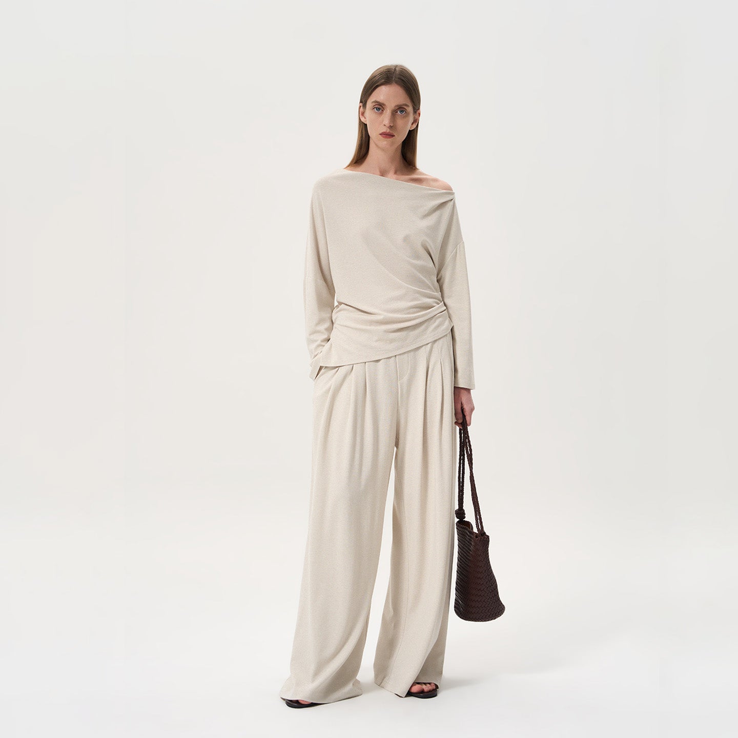 Off-Shoulder Top and Pleated Pants Set